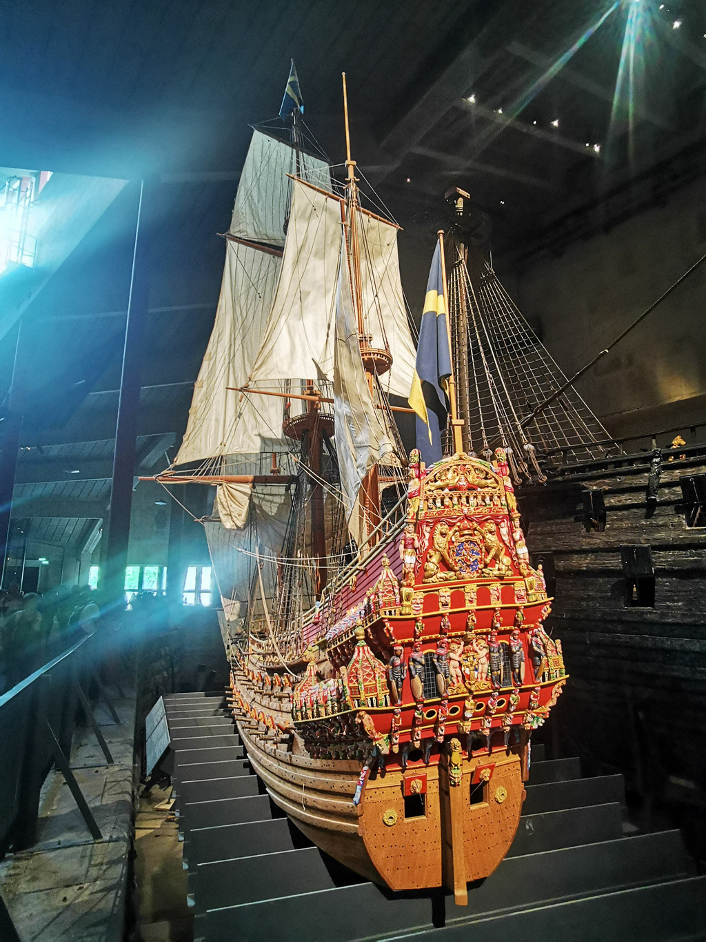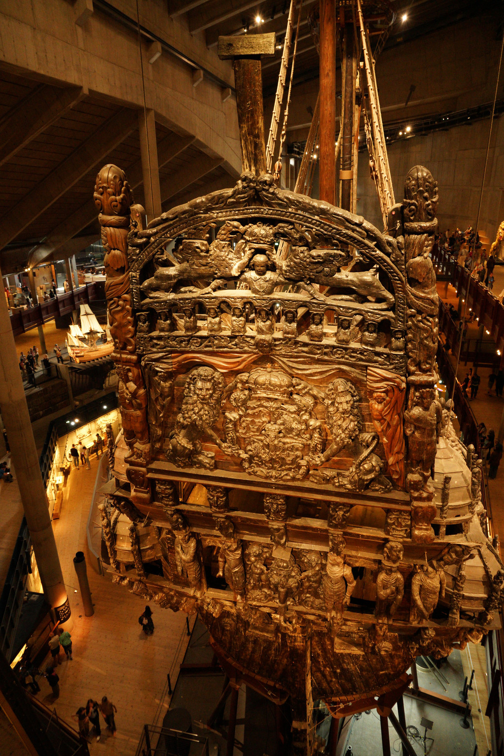 船尾龙骨有6层普通楼房那么高,分50 多层,精心雕刻700 多件雕塑品,简直可以和瑞典皇家宫殿媲美。