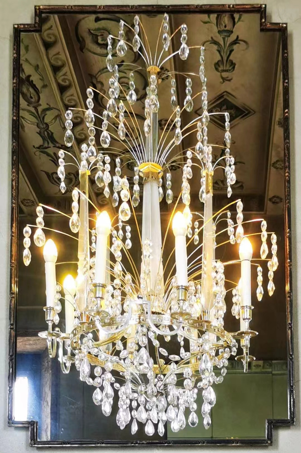 两边墙上,还镶嵌着用各种彩色小块玻璃组合成的一幅幅壁画,神秘的美!