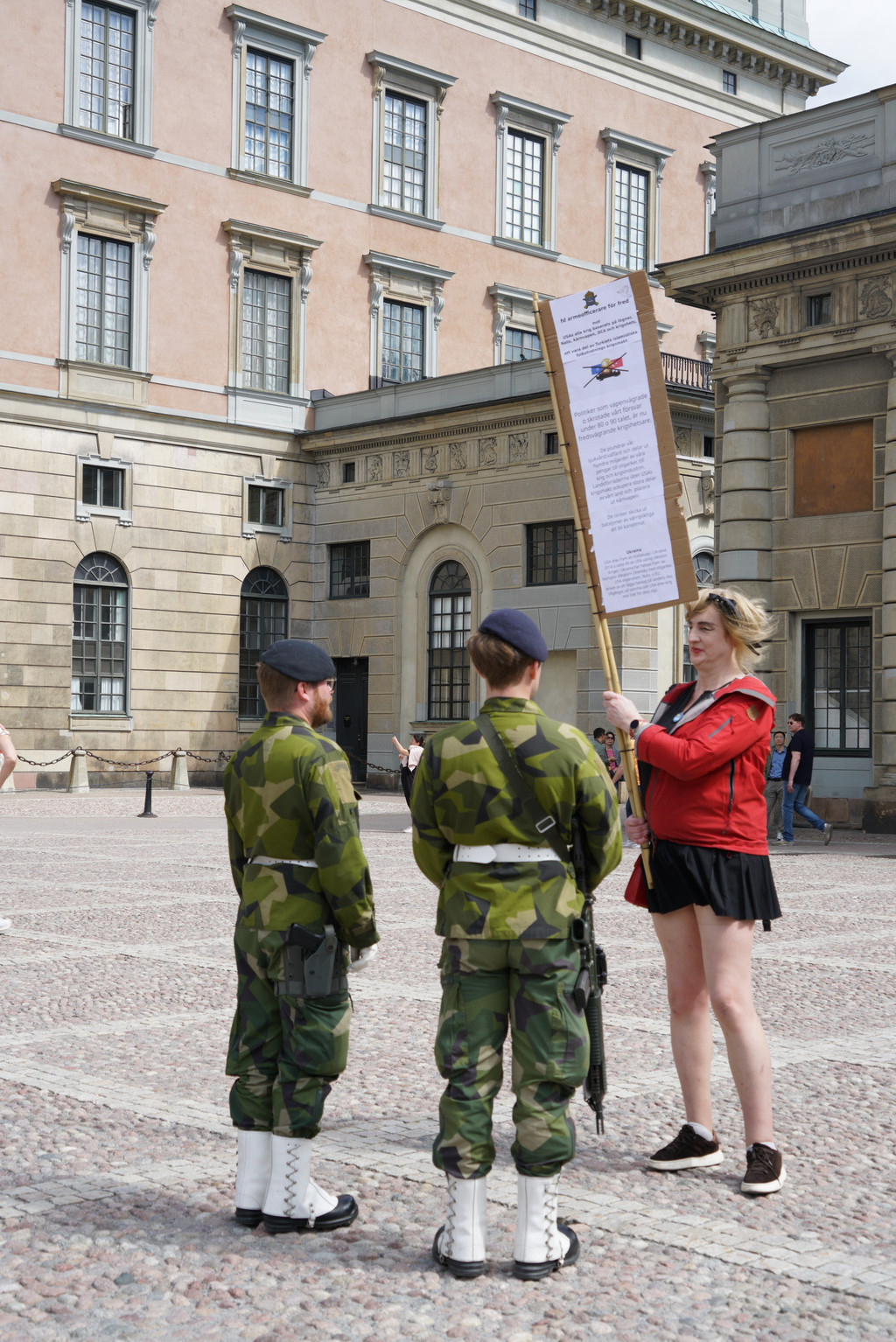 有抗议者在广场一角默默的抗议着,警察去劝阻。我用相机远远的拉了一张。我不是想知道抗议者抗议什么,而是好奇这个抗议者是男还是女呢??