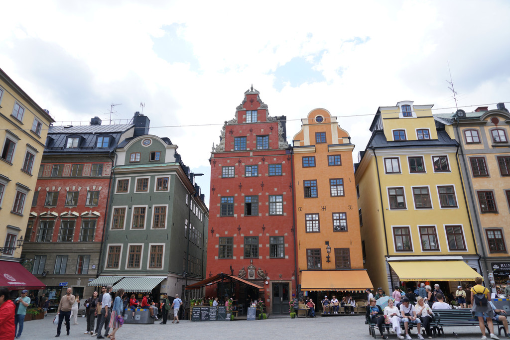 首先来到了老城中心大广场,这里的有斯德哥尔摩五颜六色风格各异的建筑,冰箱贴标志性图案。