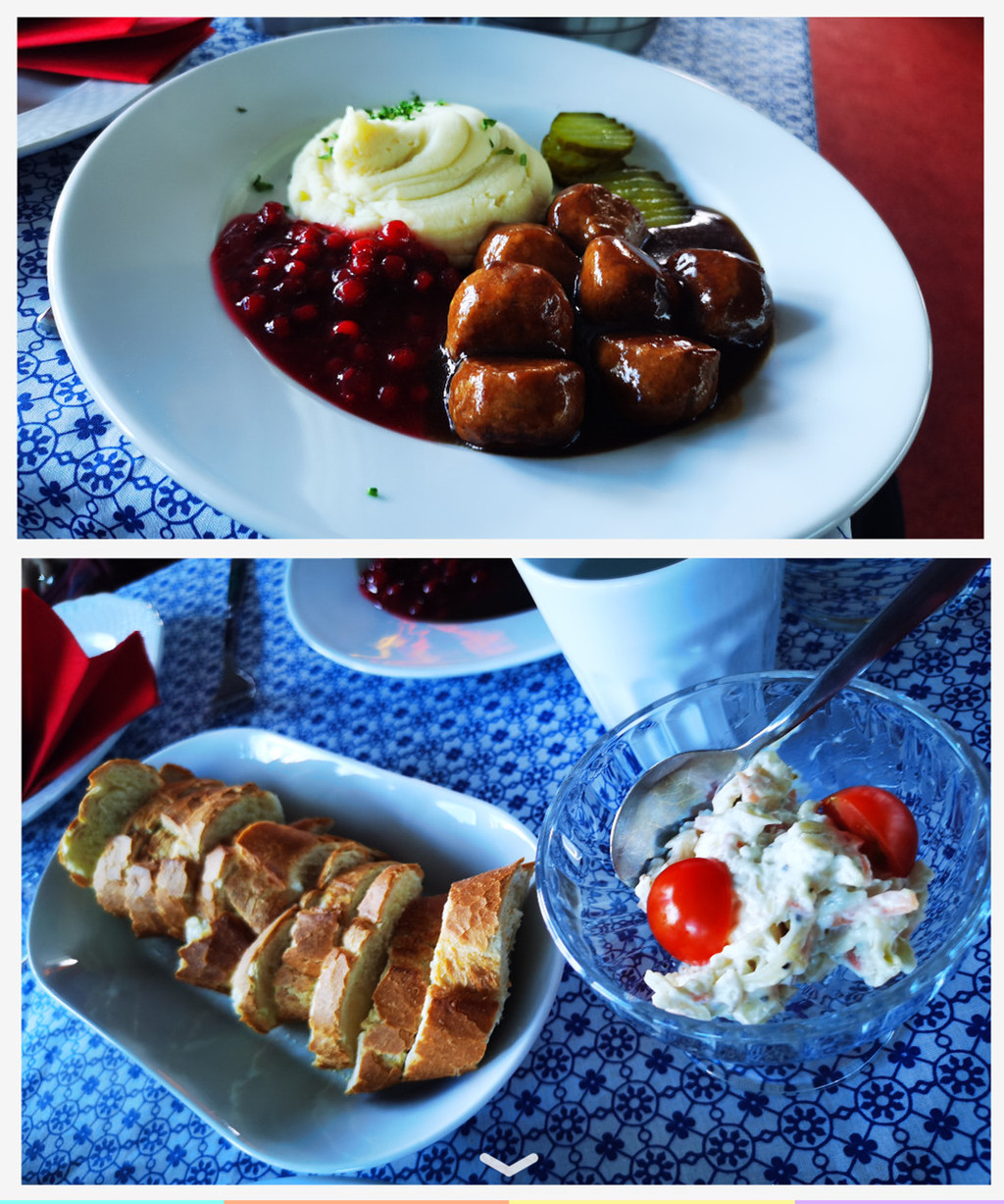走下山坡,视眼开阔,美丽的风景就在眼前,海上停泊着各种游船。我们中午餐就是在停靠在岸边的游船上吃的瑞典肉丸餐。
