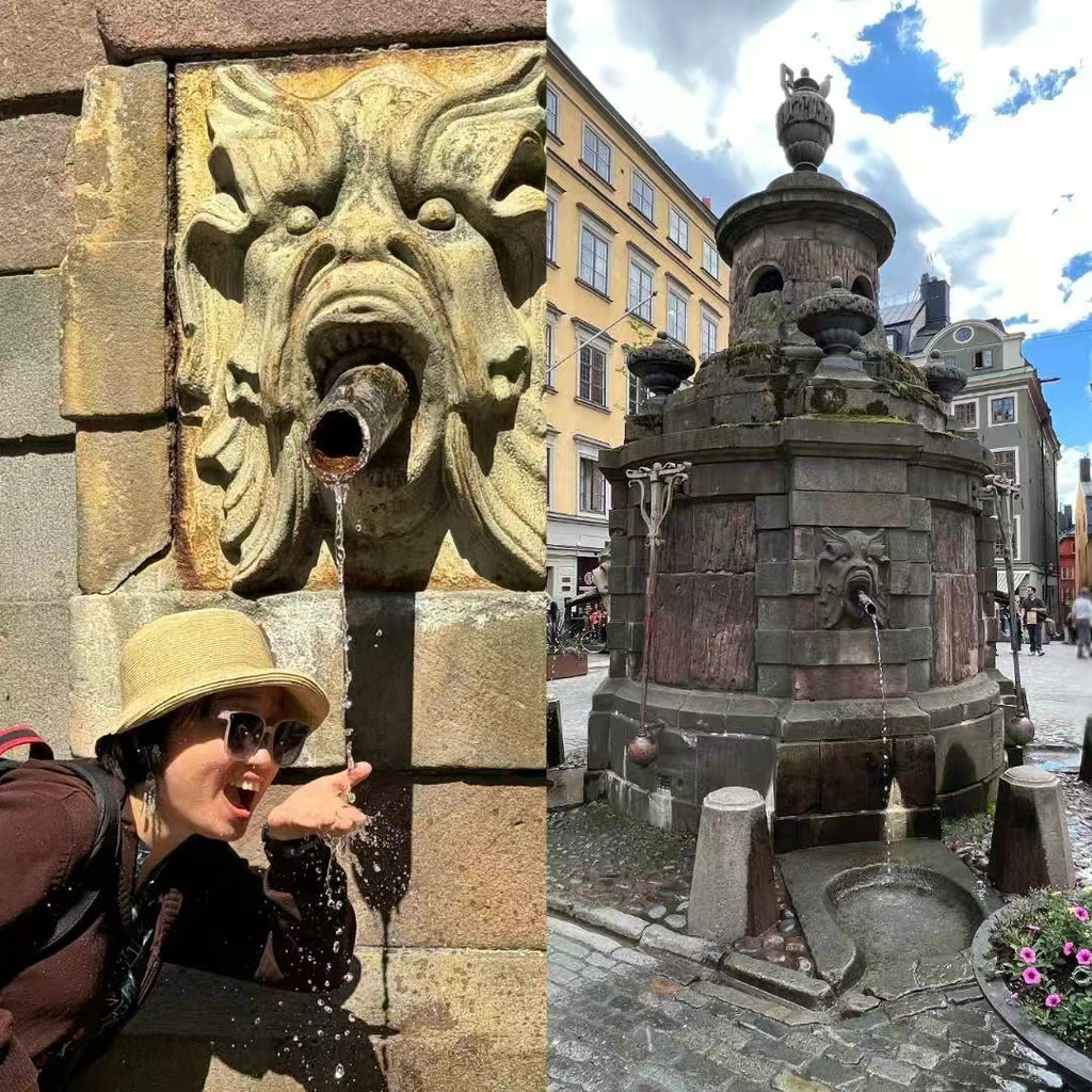老城中心广场中央有一口老井,弗古伦德喷泉,泉水汩汩而流,建城以来这口淡水井长流不息,一直供当地人饮用。我们都在那儿喝一口水,调皮一下,哈哈哈~~