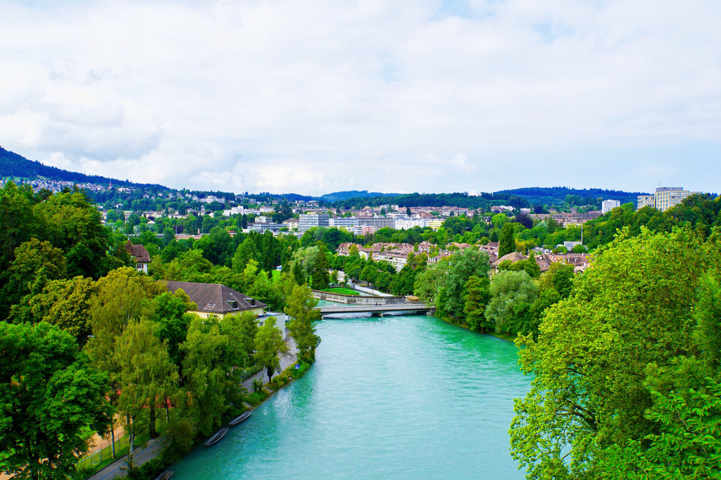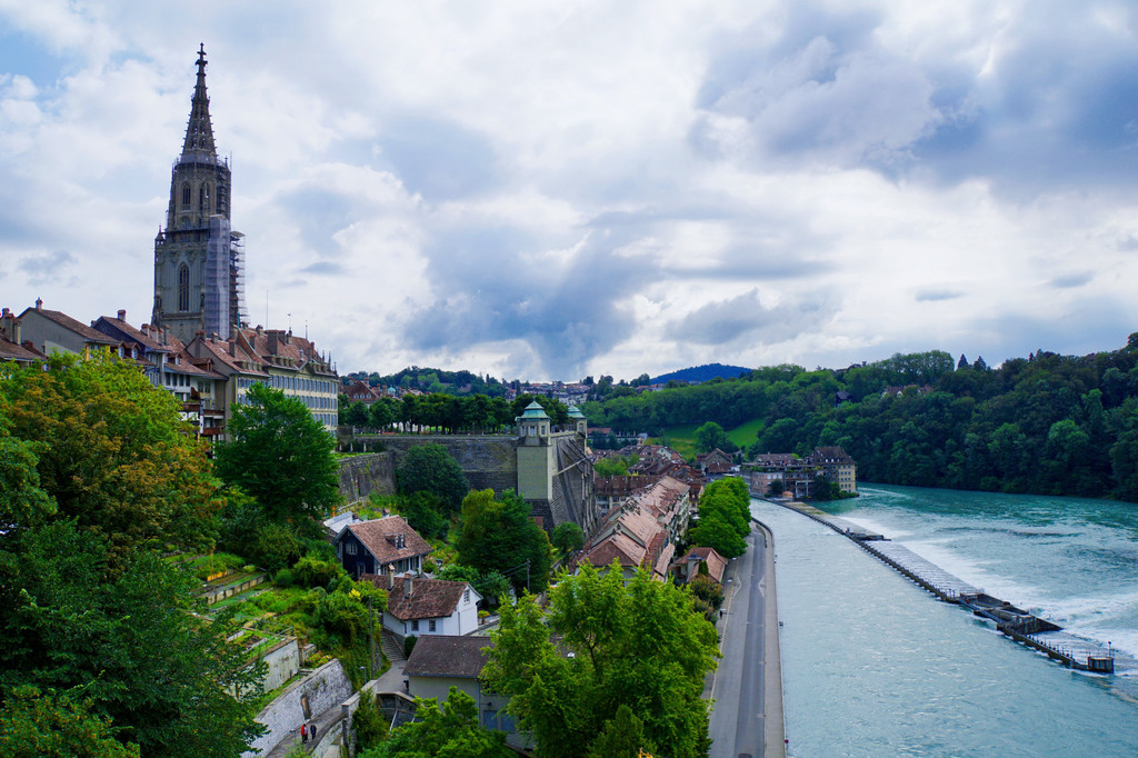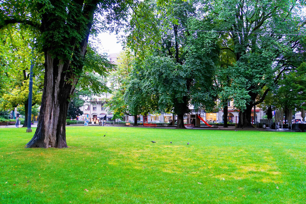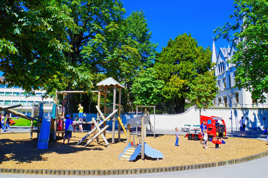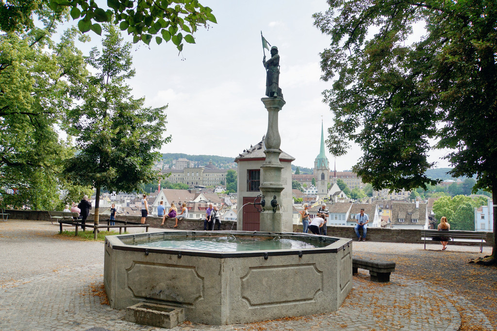 无心插柳柳成荫,从班霍夫大街拐到一条与之平行的小巷里,走两步就来到了一个地势较高的平台,在这儿既可以玩又可以欣赏利马特河两岸的风光。