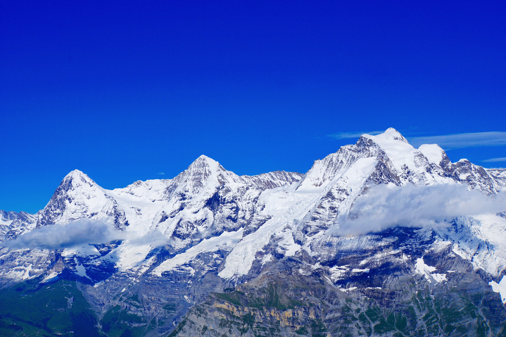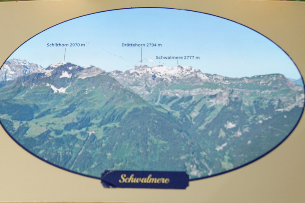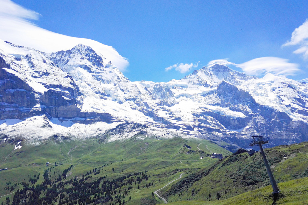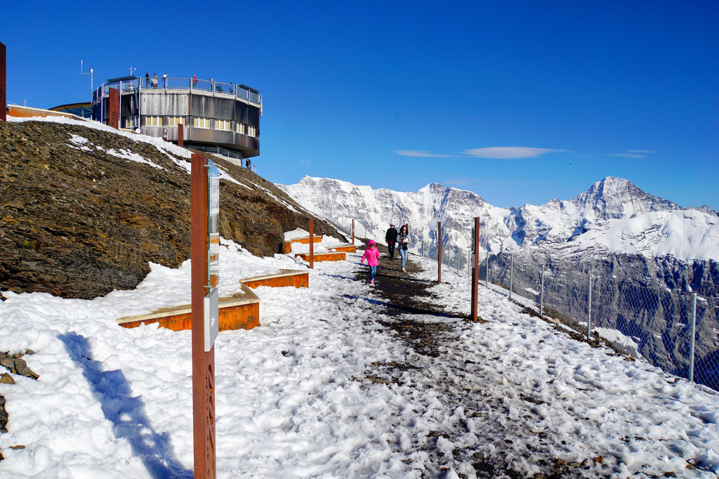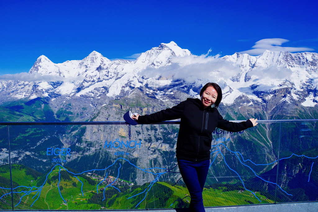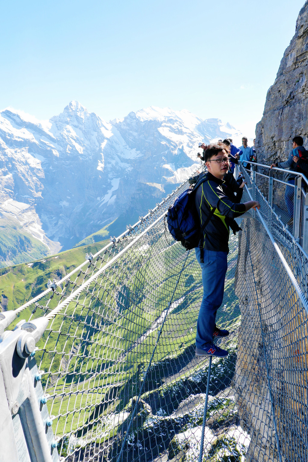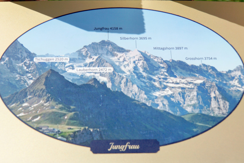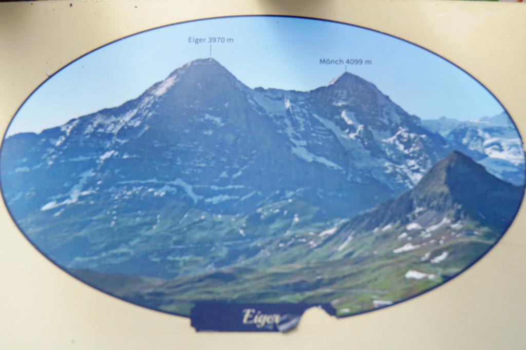 看了指示牌,对照了一下,远处中间缺口的左边那座是艾格峰,右边分别是僧侣和少女峰,感谢我的长焦镜头 。