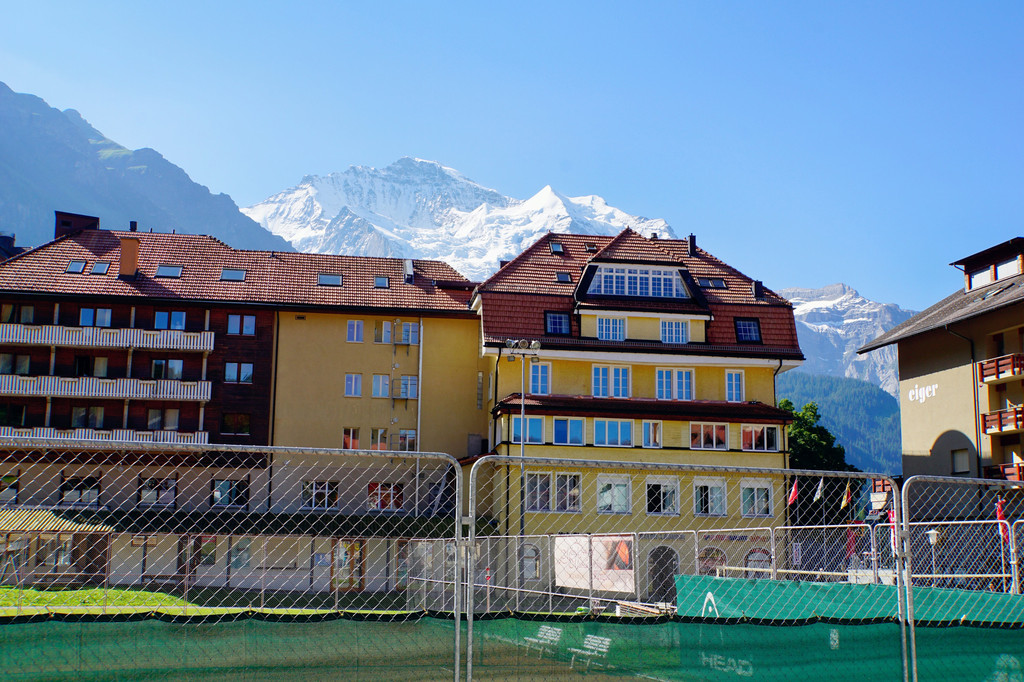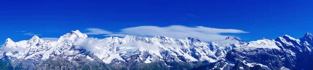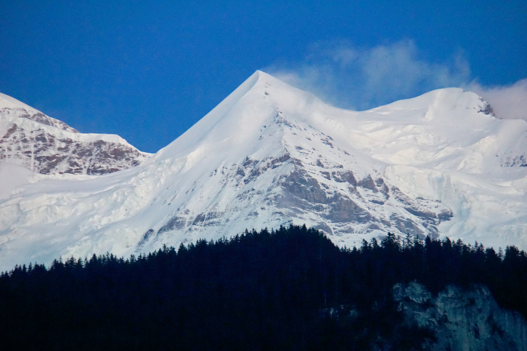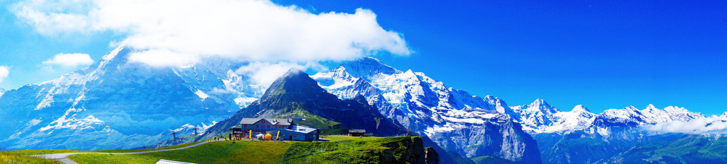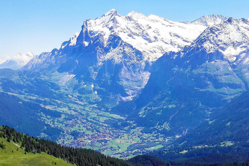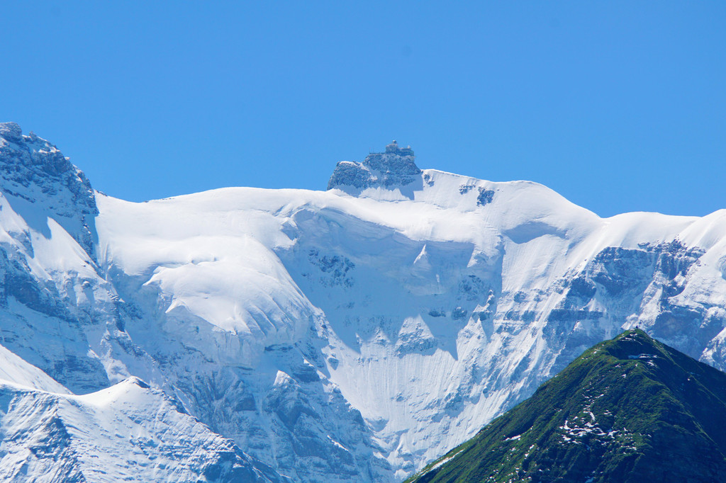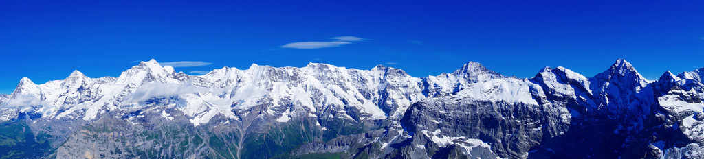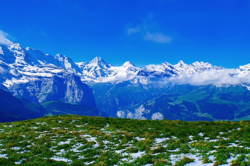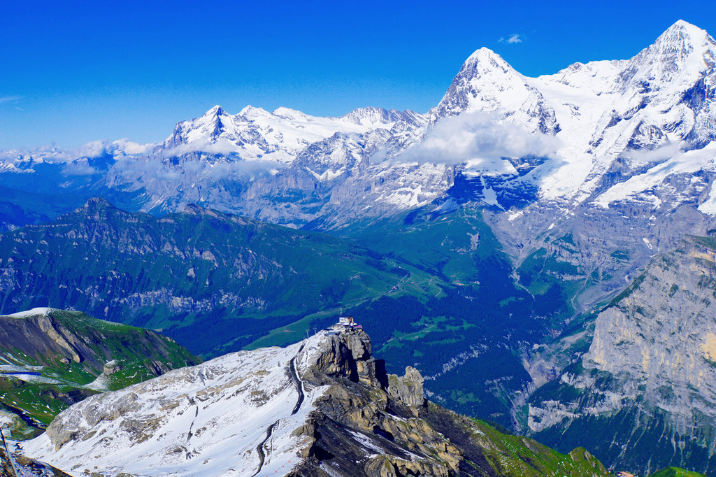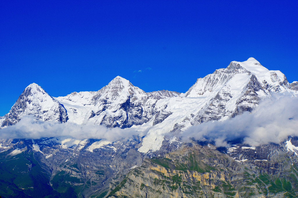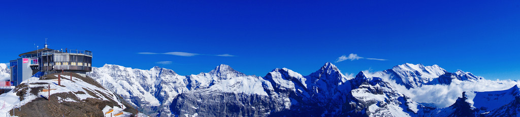 看了指示牌,对照了一下,远处中间缺口的左边那座是艾格峰,右边分别是僧侣和少女峰,感谢我的长焦镜头 。