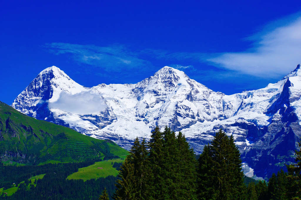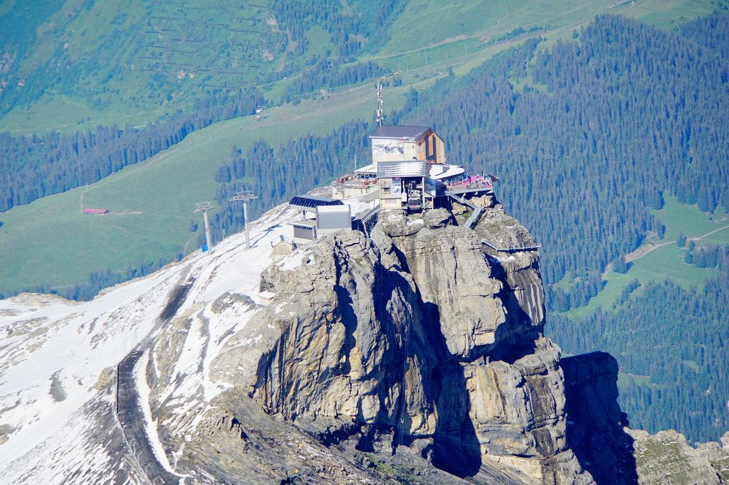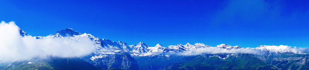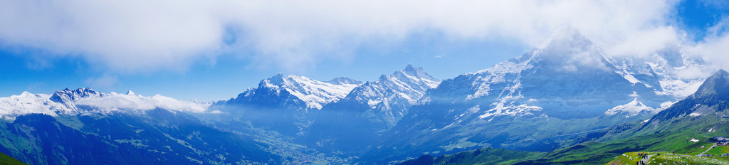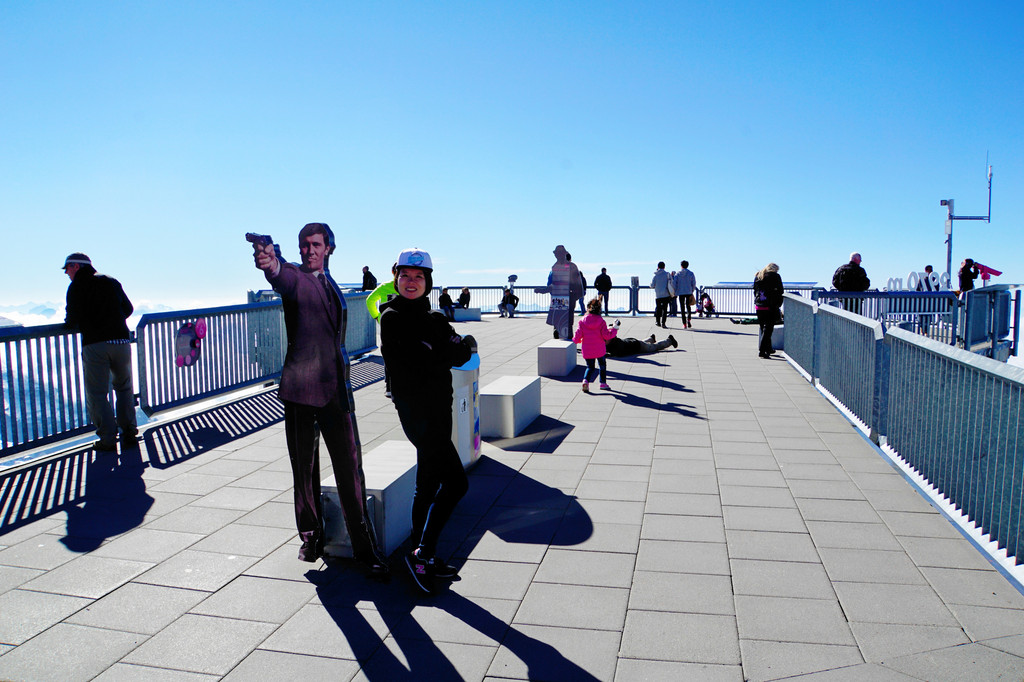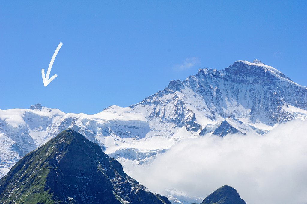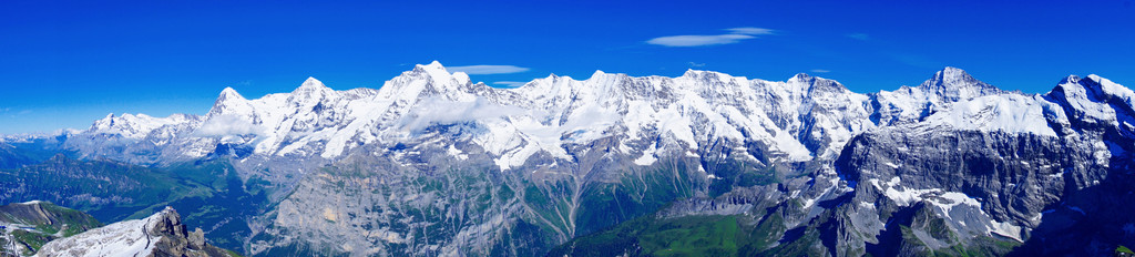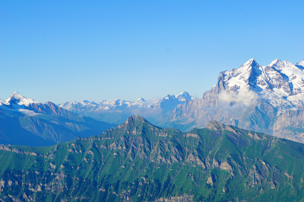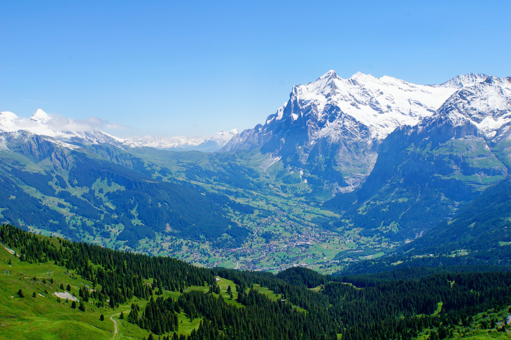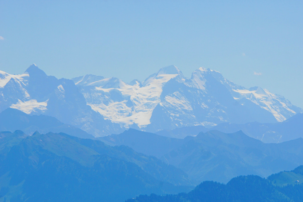 看了指示牌,对照了一下,远处中间缺口的左边那座是艾格峰,右边分别是僧侣和少女峰,感谢我的长焦镜头 。
