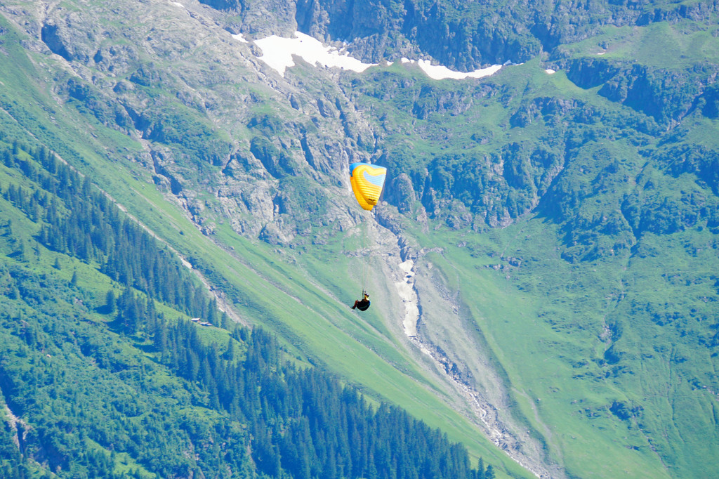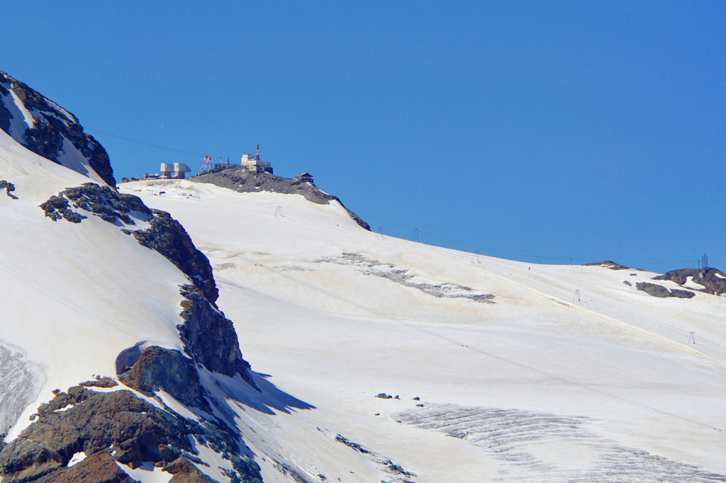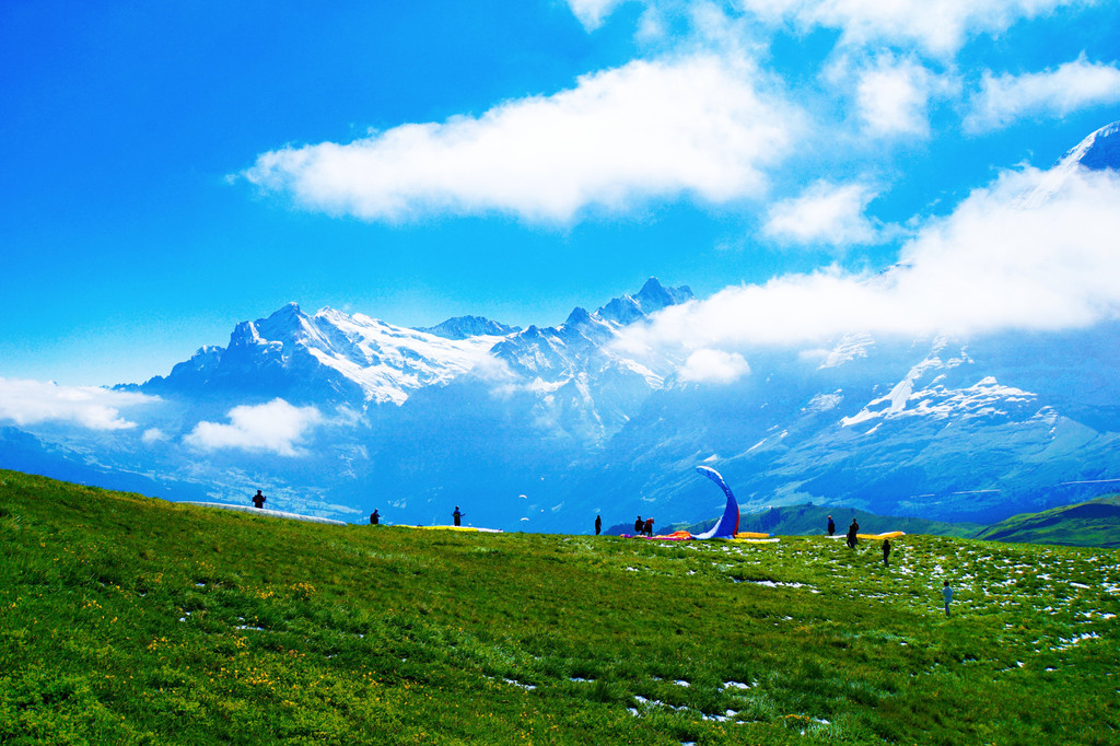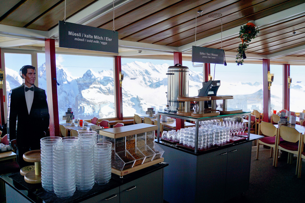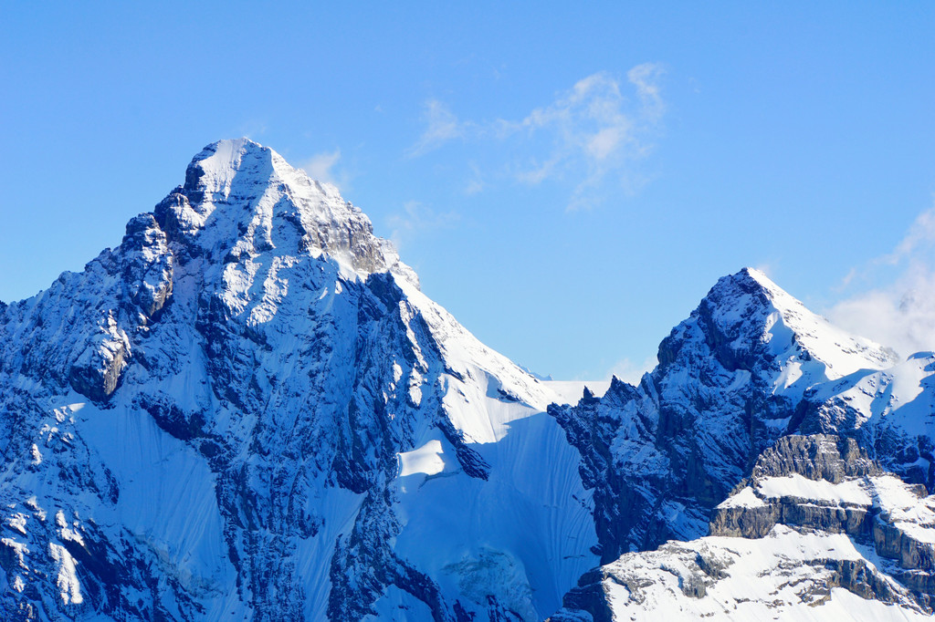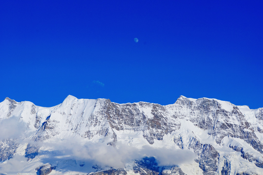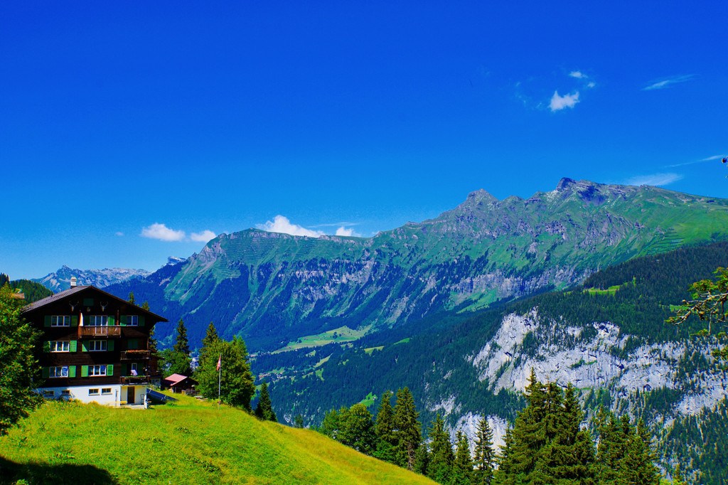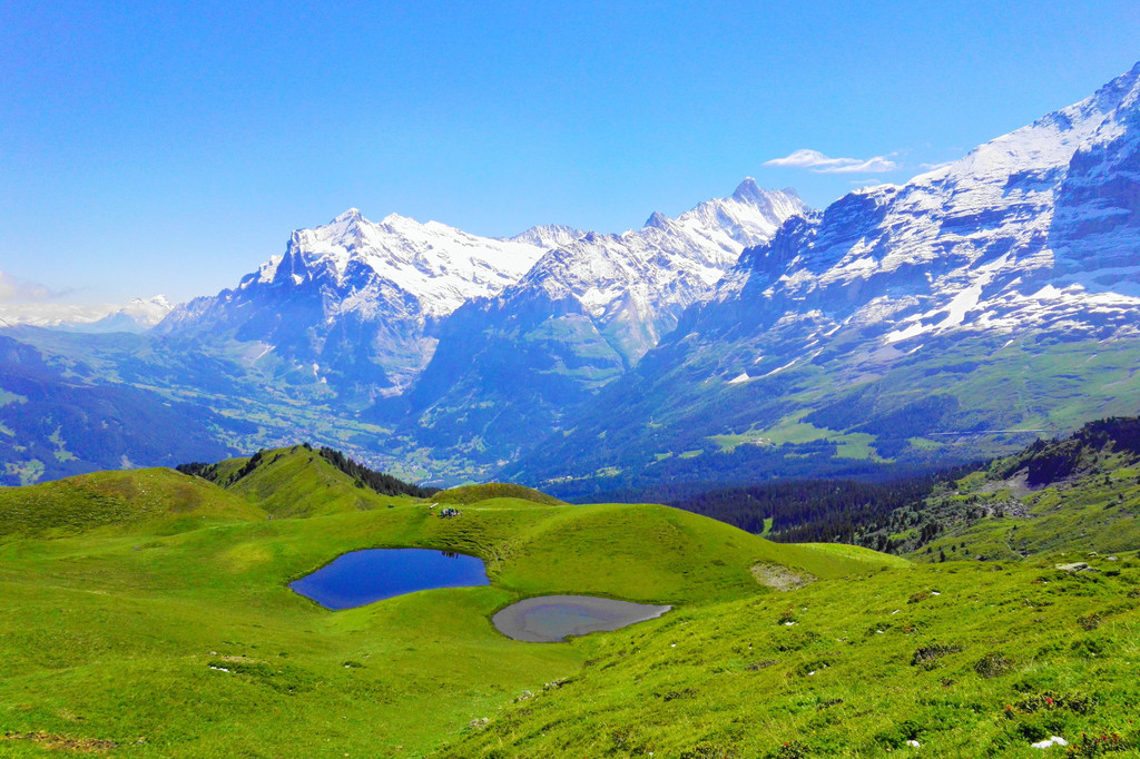 看了指示牌,对照了一下,远处中间缺口的左边那座是艾格峰,右边分别是僧侣和少女峰,感谢我的长焦镜头 。