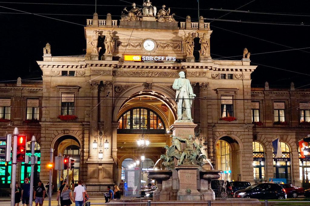 在苏黎世入住的沃尔哈拉酒店离火车站真心近,两三分钟就到了。出火车站的时候就发现夜景很迷人,闲不住,又出去瞎逛了。苏黎世火车站是瑞士最大的火车站。