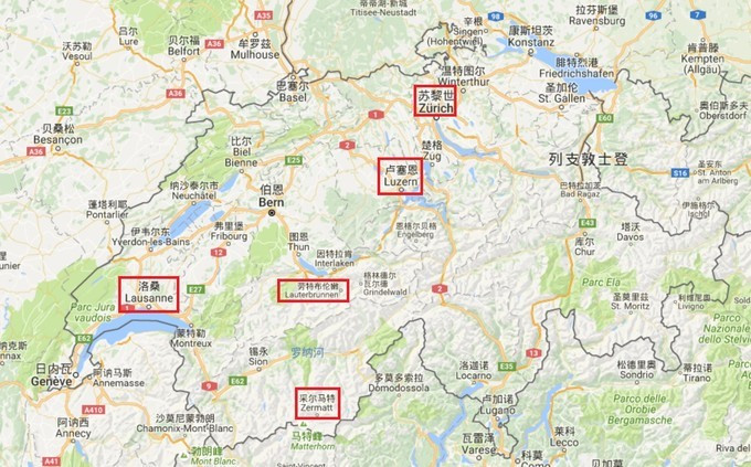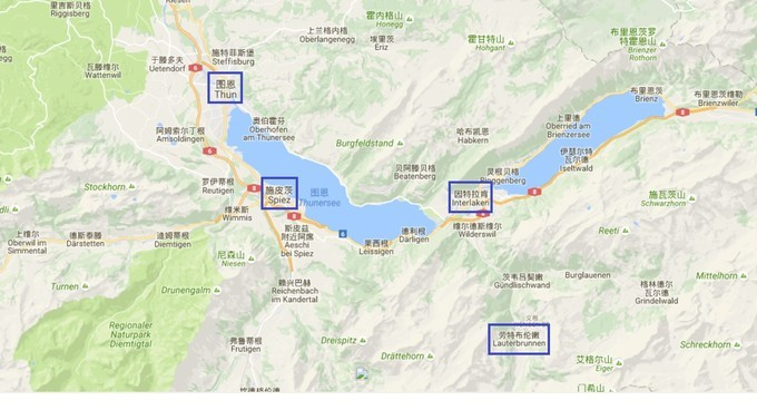 再附上这次瑞士之行的清单(中英文对照,便于大家地图上查找):