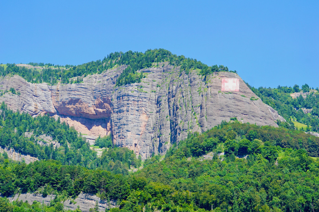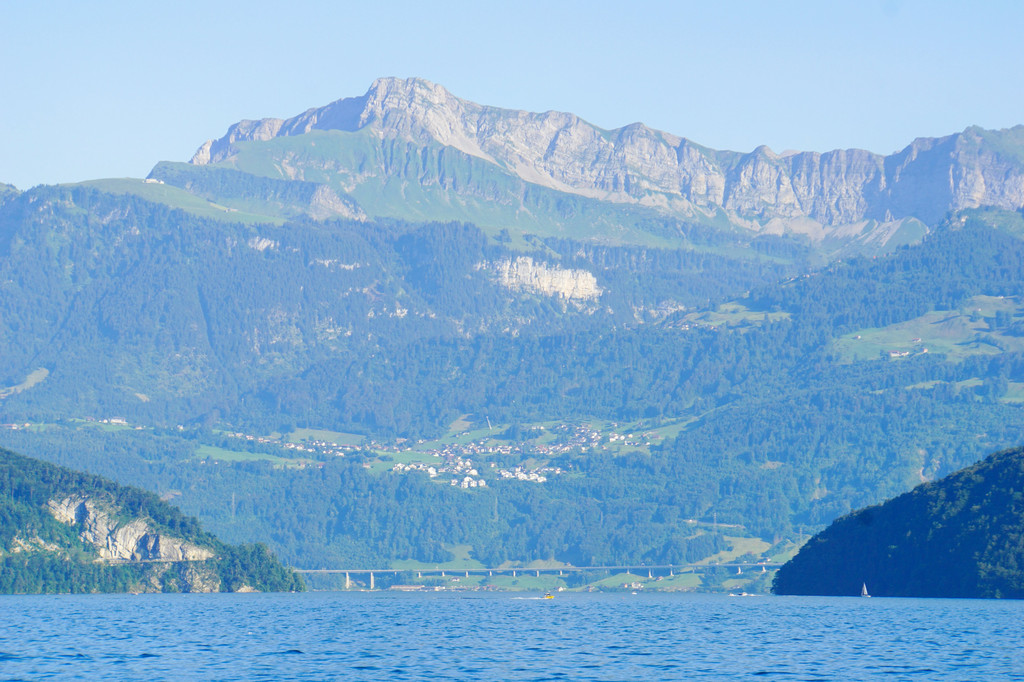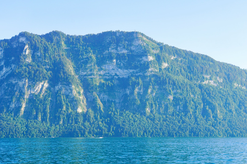 从韦吉斯坐船回卢塞恩,途中看到了瑞吉对面的山上一部很有名的观光电梯,你们在图中仔细找找,找到了吗?