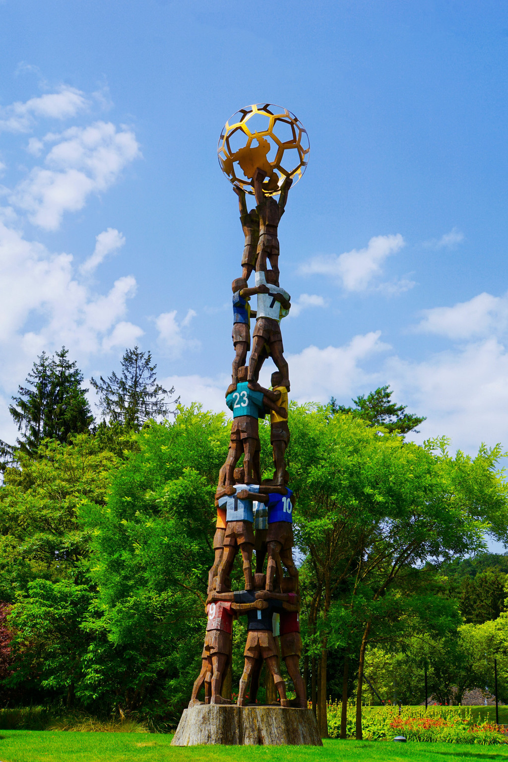 雕塑,寓意全世界足球运动员联合起来,猜的。