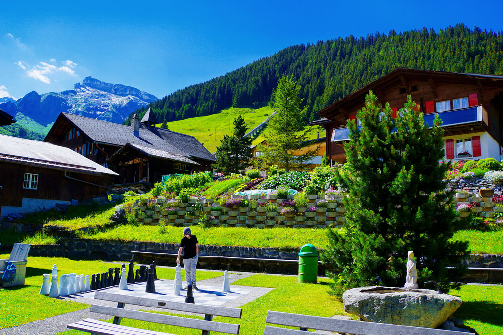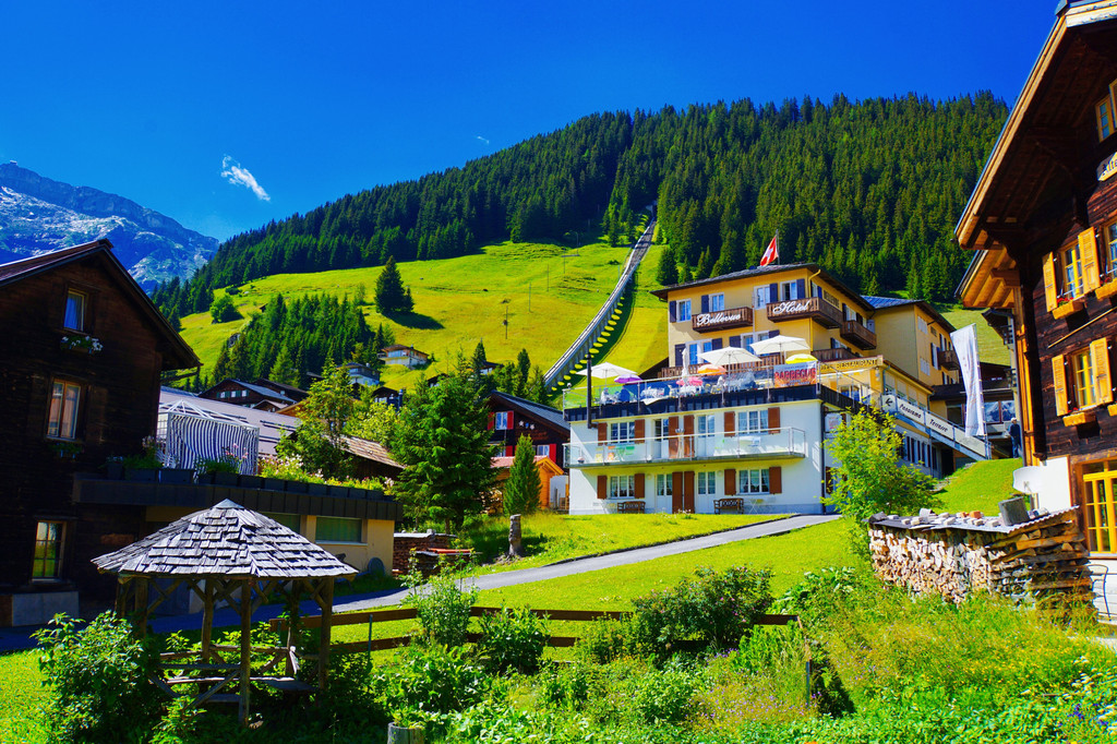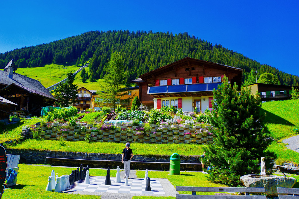 瑞士人民真会玩,山坡上见缝插针还建有迷你高尔夫球场。