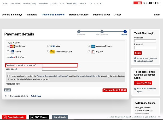 第五步:选择卡的类型,输入E-mail地址用来接收SBB发来的电子票信息。