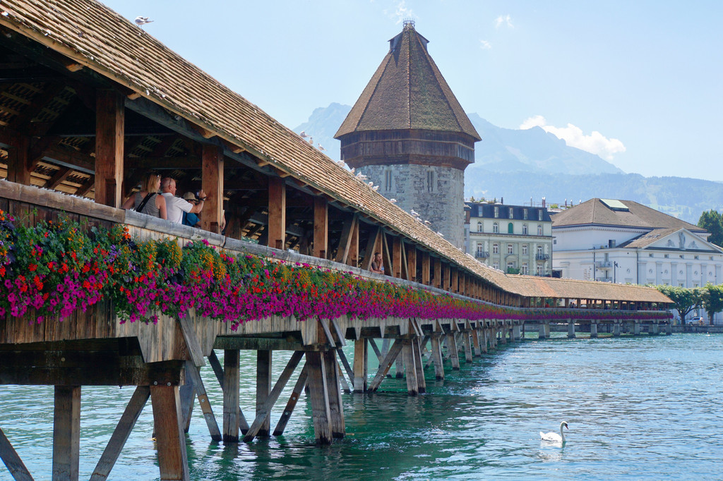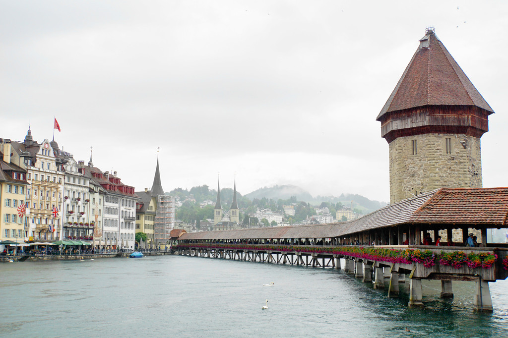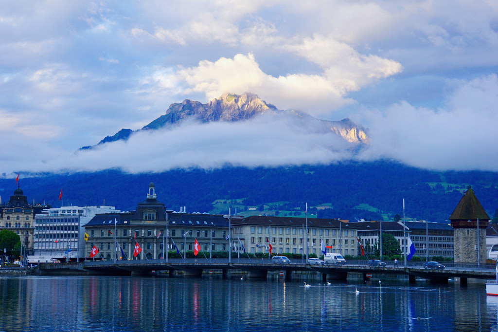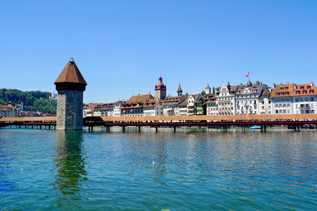近处的廊桥、八角楼,远处的皮拉图斯,必将成为铭记一生的经典画面。