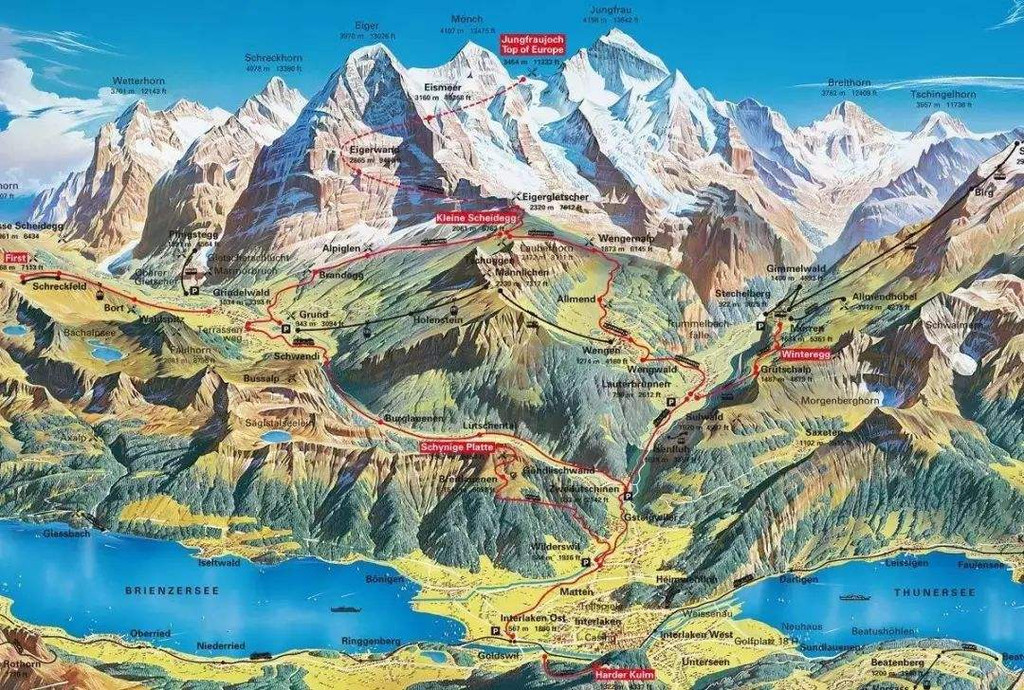 湖泊:卢塞恩湖(Lake Luzern)、图恩湖(Lake Thun)、日内瓦湖(Lake Geneva)