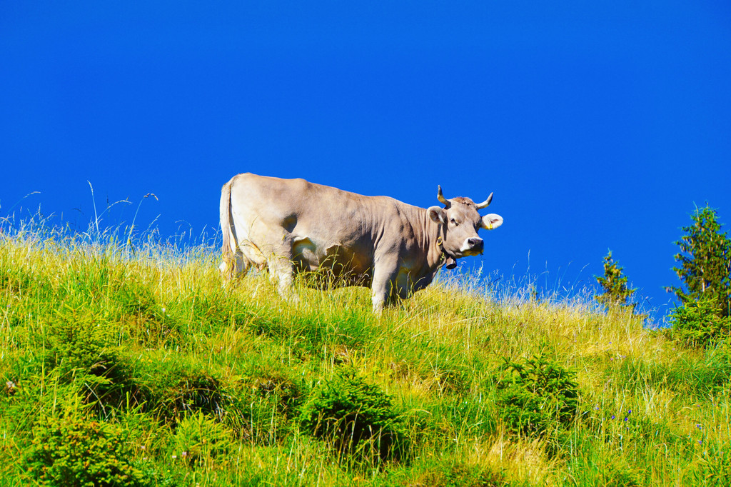 山坡上悠闲吃草的牛,为什么我总是能吸引牛的目光?Why?
