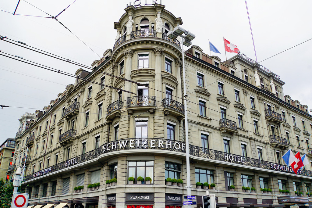 苏黎世施维泽霍夫酒店(Hotel Schweizerhof Zürich),就在火车站对面,位于班霍夫大街的开端。查了下,价格还是可以接受的。