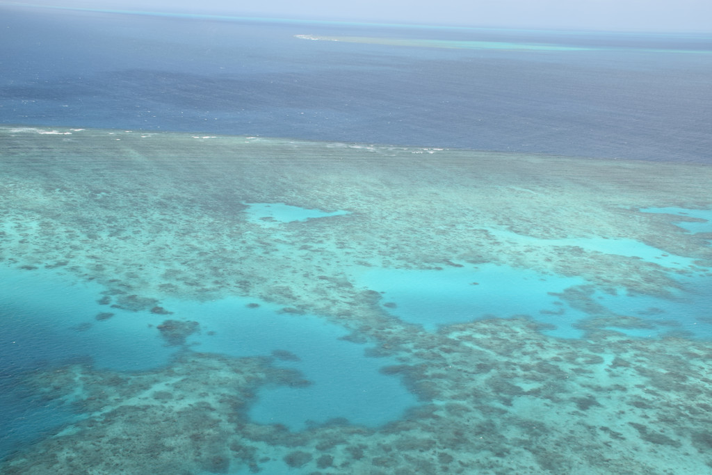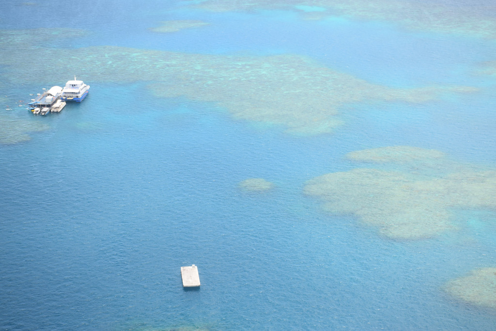 最棒的是坐直升飞机在天空俯瞰大堡礁,蓝色的海面上深深浅浅的一片片礁石,美得让人窒息。