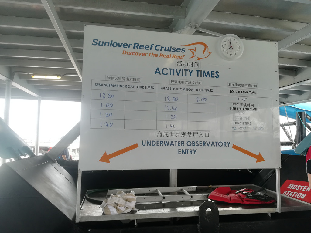 海上平台有很多项目可以游玩,半潜水艇、玻璃底船、海洋生物触摸时间有时刻表,可以根据自己安排过去。平台有很大的浮潜区域,可以租用浮潜的设备下海游玩,可惜我们不会游泳,连泳衣都没带,浪费大好和深海亲密接触的机会。