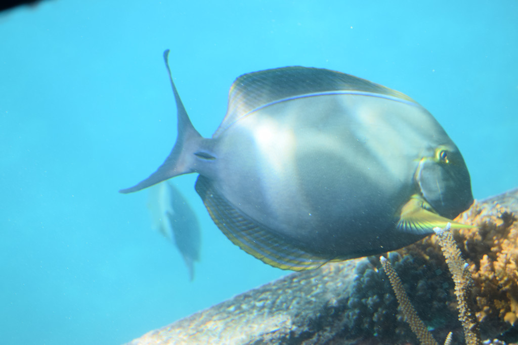 海水非常清澈,在平台上或者海底世界观赏厅能看到游来游去的深海鱼,深海鱼真的五彩缤纷,形态各异。