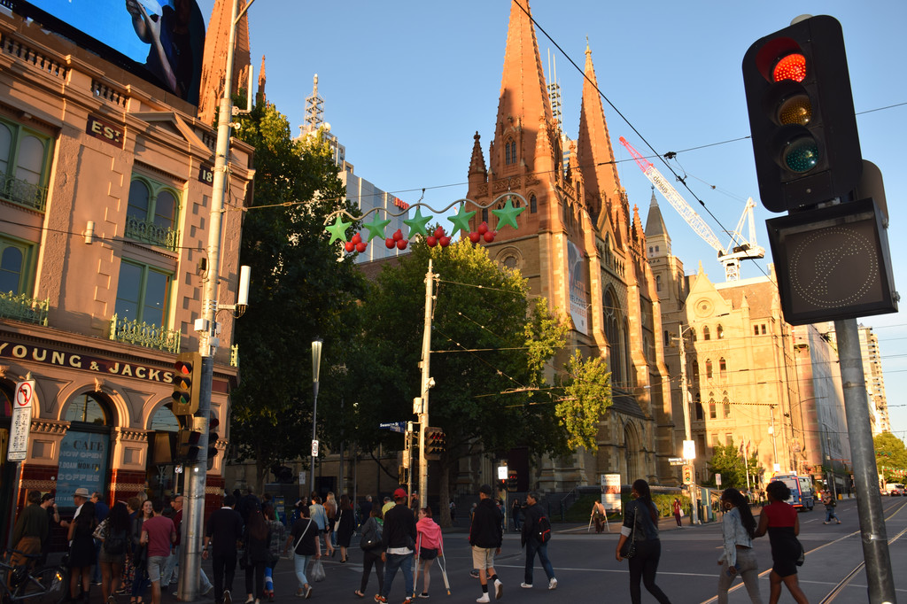 正值墨尔本夏天时节,晚上八点太阳还未落下,虽然白天补了个长觉,还是有充足的时间逛墨尔本市区,墨尔本市区不大,走路四通八达(当然还是需要稍微耗些体力),环城有一趟免费的复古电车City Circle Tram Route 35,可以绕城各个景点游玩,不要钱又方便。