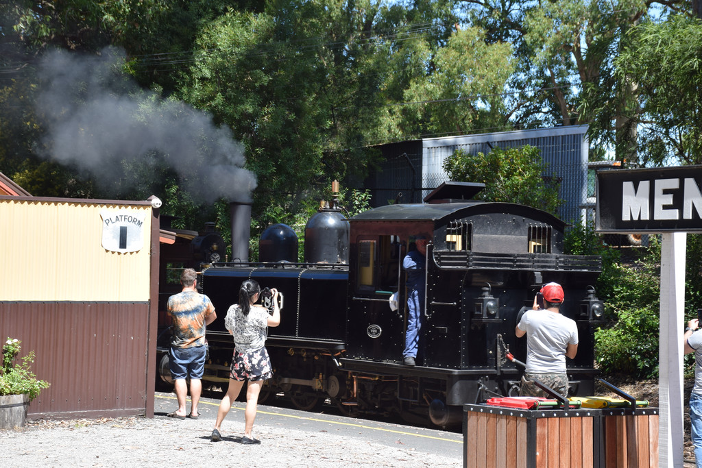 结束上午的漫游,赶到维多利亚图书馆附近的广场集合。墨尔本市区距离小火车和企鹅岛都很远,自驾不划算,建议大家搜万能的某宝哈。通过网上订的一日游票,在异国找到亲爱的同胞组织的旅行团,往蒸汽小火车方向出发。小火车是开放式的,以前能够坐下火车窗沿上,两腿伸在外面。可惜,我们去的时候这个动作已经被认定有安全隐患,不允许了。不过小火车的乘坐体验还是很不错,站台和火车都有悠久的历史,非常复古,置身其中,感觉像在玩具里。