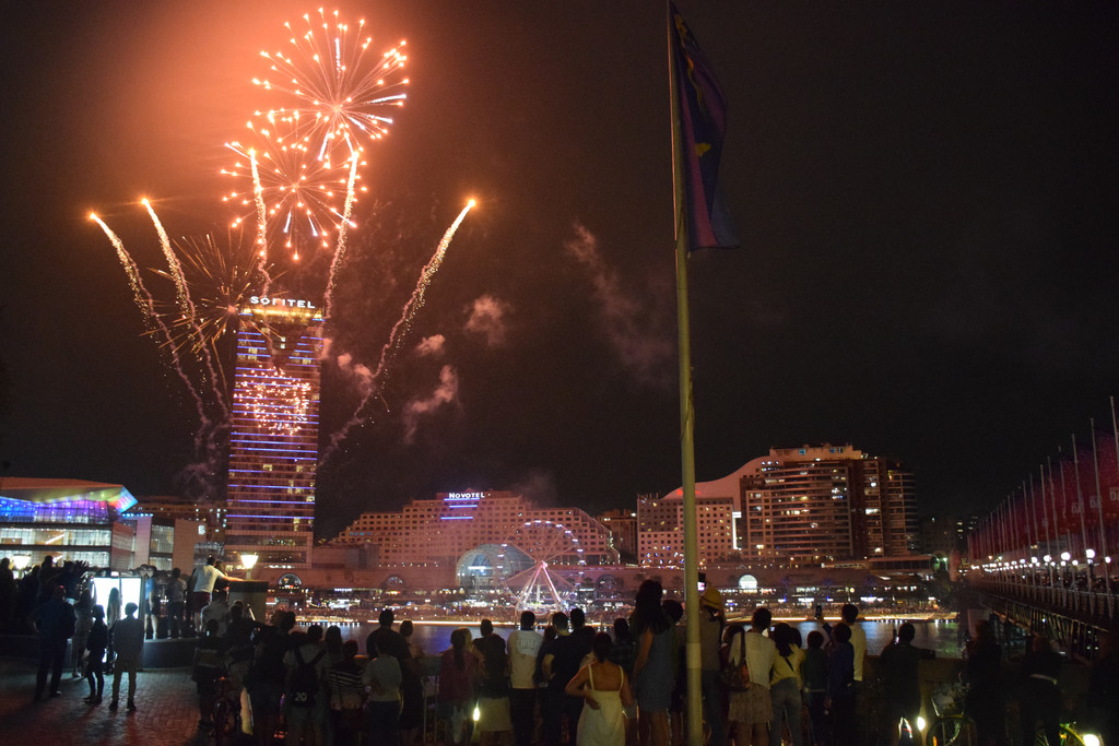 即使每周一次,放烟花的时候桥上还是挤满了人,所以还得提前站好位置。