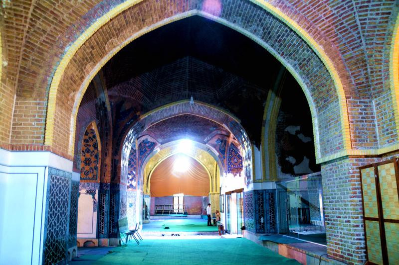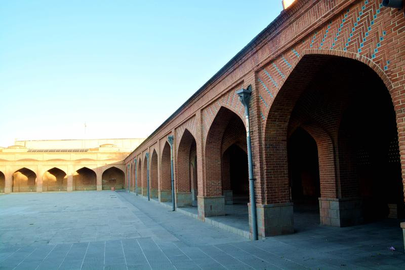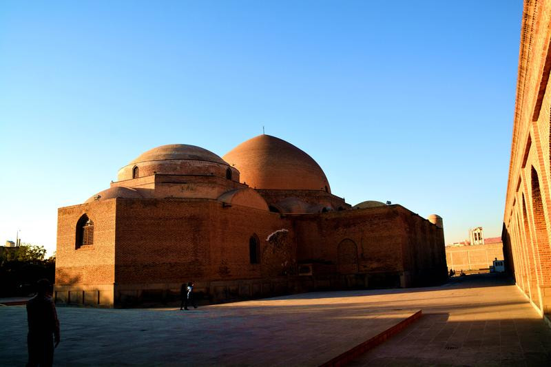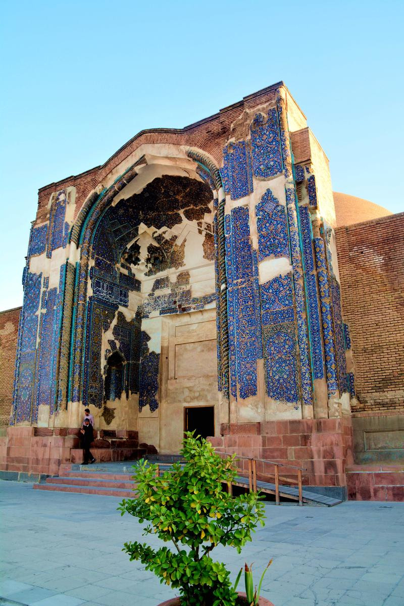 大不里士是伊朗阿塞拜疆地区的最大城市、东阿塞拜疆省首府。人口 100万。位于雷扎耶湖盆地东北侧的山麓,海拔 1,367 米。始建于3世纪,历史上多次成为王朝都城,古代为四方往来通衢。具有重要军事与交通意义。工业中心,有重型机械、炼油、毛纺织、棉纺织、卷烟、啤酒、皮革制品、面粉、肥皂、火柴等工厂。地毯生产著名。农牧产品的重要贸易中心。伊朗铁路由此通往阿塞拜疆、亚美尼亚与土耳其。市区有众多温泉,蓝清真寺为著名古迹。城东萨维兰山是拜火教圣地。据传说,公元791年大不里士曾是阿拔斯王朝的哈里发哈伦·拉希德的妻子的住地。13世纪和14世纪,这座城市曾是伊儿汗国的首都。在第二次世界大战期间,大不里士是苏联实际控制的阿塞拜疆独立共和国的首府。大不里士距首都德黑兰550公里,始建于公元三世纪,历史上多次成为王朝首都。古代为四方往来通衢。具重要军事与交通意义。这是我们乘坐的火车,卧铺票很便宜。大约不到40元人民币,还能节省时间和住宿费用。是穷游者最好的选择。在火车上面看到的一路风光。早上8点,火车准时到达。这是大不里士火车站。其实最近一年,我是在穷折腾。应该是土耳其,格鲁吉亚,亚美尼亚,阿塞拜疆,伊朗一路玩过来。自由行的时间应该在60天左右,费用应该控制在人民币15000元以下。而我却因为家庭原因,分成土耳其一趟。格鲁吉亚,亚美尼亚,阿塞拜疆一趟。这次伊朗一趟。多花了4张飞机票钱。到了大不里士,寻找出租面包车。20万把6个人送到酒店。这是我住宿2天的酒店,在市中心。徒步去各个著名景点都在15分钟左右。这家三星级酒店开价每天238万,等于人民币148元,一间双人房,包含自助早餐,人均74元。到了后来6个城市我才明白:我们的价格高了一倍。什么不能还价?而且可以拼命还价。这种级别的酒店,双人房价格应该在10美元一天,而且要含早餐。由于刚刚到达伊朗,不熟悉价格。想想出入方便,地段不错。用中国网站的房价思维,也就没有还价,倒让出租车司机拿了不少回扣。到了早餐时间,才发现整个酒店。除了我们8个人,几乎没有其他游客。这时候,我才明白。我的一位朋友,在伊朗自由行群里认识的老师。曾经告诉我:伊朗,除了德黑兰,伊斯法罕的房价高一点。其余城市酒店都不贵。今天除了房价让人宰了。在大街上小商店里面买了3瓶水,当地人应该是5000里亚尔一瓶。我给他5万,应该找零钱3万5。卖水的半大小孩,呵呵对我一笑。不找另钱了。问他要,双手一摊。。。我只好算了。又应了我的话:伊朗的人民很友好,伊朗的【宰客的】也不少。下面是一家电影院。很萧条,一个人也没有。可能晚上好一点吧。走过一座清真寺。叫:Ghayas清真寺,也进去看看。完全是新修建的,拍照倒也蛮漂亮的,免费参观。大不里士的老城区街道。这是一条步行街,里面有饭店。我们进去吃土耳其烤肉,每人一碗汤。有扁豆汤,奶油汤。。。人均10元人民币,可乐雪碧0.6元一瓶。这是人民公园,英雄帖木儿的雕像。伊朗小伙子强烈要求我拍照,一副最酷的样子。这是著名的【蓝色清真寺】。下午4:30关闭。门票15万,大约10元人民币。我们到达的时候已经4:10分,售票员主动减少一半,6个人买3张门票。又一次体现出来:伊朗人民很友好。蓝色清真寺是白羊王朝统治者沙贾汗(Jahan Shah)下令建造的,于1465~1466年建成。进入蓝色清真寺,映入眼帘的是一座宏大的圆顶建筑。蓝色清真寺始建于1465 年,与土耳其的蓝色清真寺同名,但是规模却小得多。清真寺先后两次被地震所损坏,虽然修复多次,但是仍较为残破,外墙上仅存少量的蓝色马赛克。 不过,当游客进入大门后,古朴建筑和墙壁的蓝色彩釉都在叙述着当时这座清真寺曾经的辉煌。蓝色清真寺煞是好看,高雅平静,是穆斯林绝好的祷告场所,对于我来说,是个游客,也是瞻仰清真寺的最好选择。 清真寺一般来说都有巨大的土色穹顶,这是判定清真寺规模的一个很重要的标准。蓝色清真寺号称“伊斯兰绿松石”,这座颇有拜占庭风格的清真寺坐落在伊玛姆霍梅尼大街上。蓝色清真寺建成后,工匠们又用了25年的时间以蓝色意大利锡釉彩瓷装饰外观,因此被称为蓝色清真寺。曾经看到介绍:世界三所最古老的蓝色清真寺之一。700年的历史悠久,外表虽然脱落严重。10元人民币的门票绝对值得一看,至少是原汁原味的古代历史建筑。蓝色清真寺本来是用蓝色的彩陶砖和复杂的书法覆盖它的每一寸表面的,谁知它在两次大地震中被震塌了。现在寺是修补好了,不过全是砖石的本色,蓝色瓷砖只在大门和内殿里有一些,工人们还在修补,地上还残留着一些破损的瓷砖旧物,工程来日方长。修补过后的痕迹还是挺明显的,只有等岁月来打磨一切。 大门口遇到有人在讲解,可惜听不懂。蓝色清真寺大殿里面破损也比较严重。清真寺大殿里面到处都是修补的痕迹。蓝色清真寺大殿的地面铺着绿色的波斯地毯,阳光从大门和窗户照射进来,如果蓝色的墙面没有损坏,“伊斯兰绿松石”该是何等灿烂。可以看出,地震前蓝色清真寺的外墙是十分精美的。蓝色清真寺除了大殿入口外,其馀建筑均在地震中震毁,直到1973年才开始重建。据说当时蓝色清真寺是光彩瑰丽的,是大不里士最美丽的建筑之一。图为蓝色清真寺入口处的长廊。这是:khaghani 公园。 下面这是:大不里士市政博物馆(Tabriz Municipal Museu