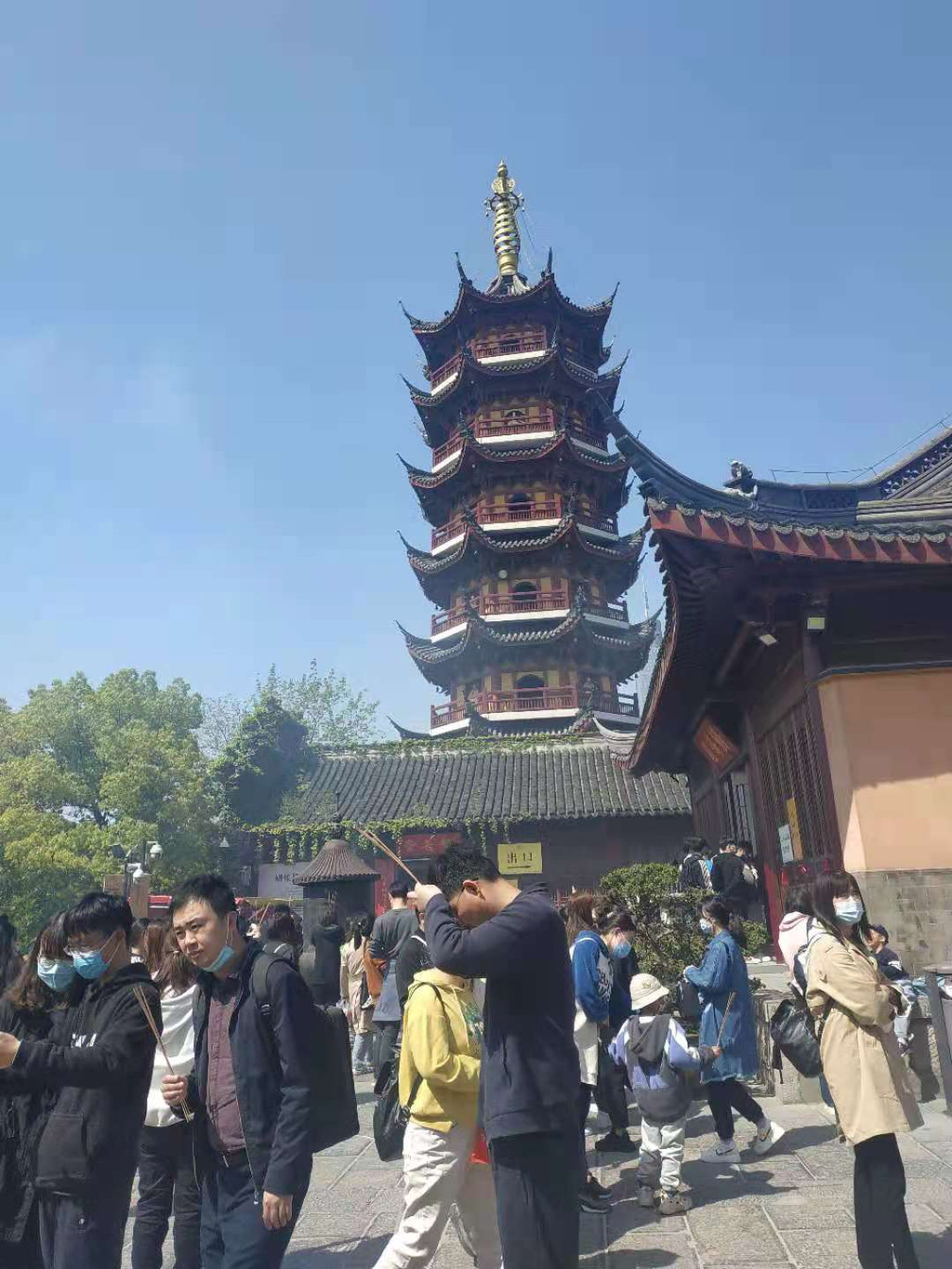一大早就出发去鸡鸣寺,鸡鸣寺两侧的道路非常宽阔,绿化很好,飘着桃花特别美