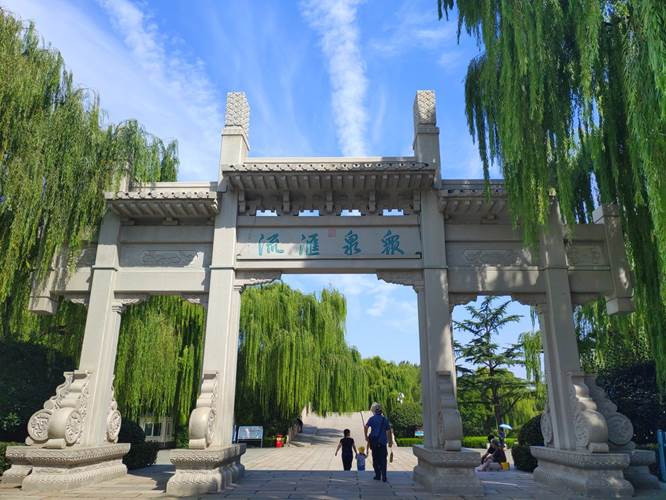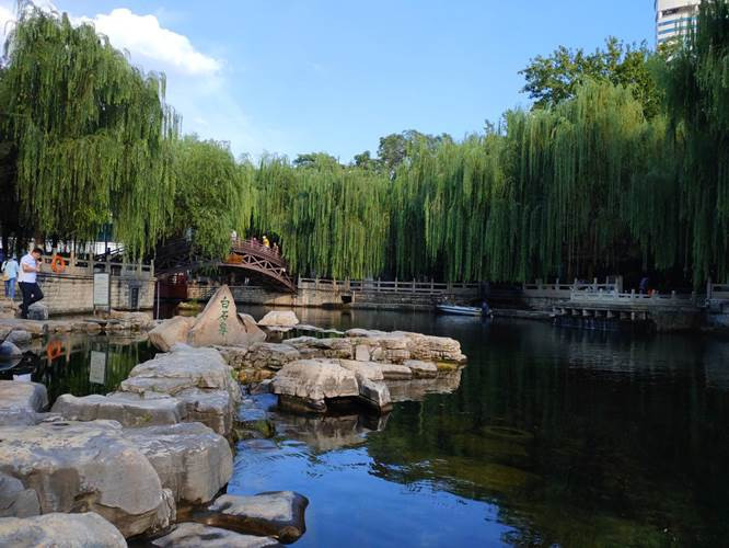 把车子停在一处,我们打卡了天下第一泉景区。这个虽然说是景区,但其实是一个开放性的景点,可以沿着路边到处逛。我们是沿着护城河逛的,一直走走走,经过了很多泉眼。什么白石泉,玛瑙泉之类的。来了之后才知道,原来济南的泉水不只是趵突泉,百脉泉,黑虎泉之类的有名气的景点,还有许多其他小泉眼。