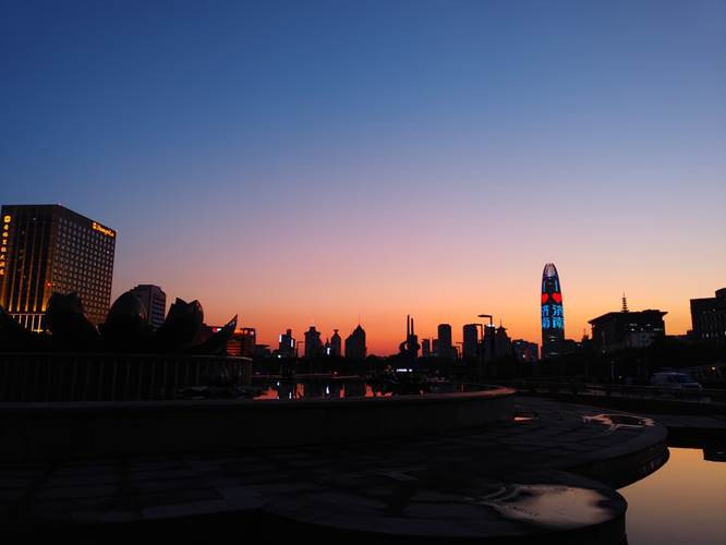 幸运的是,我们在泉城广场看到了超级美的晚霞。这个是偶然回头看到的,实在是太美了。