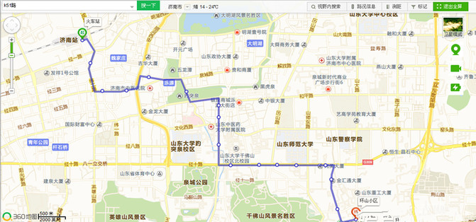 济南K51路公交。火车站---环山小区,途径趵突泉东门、泉城广场、千佛山站