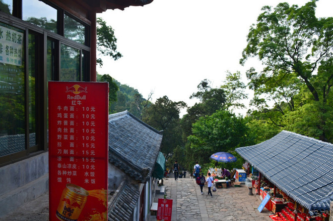 天街名不虚传,飞机都拦得。游客至此大都经过十八盘的洗礼,累得气喘吁吁,于是乎休息大快朵颐,为冲刺岱顶储备能量,我也是