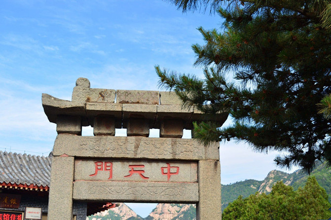 迎天石牌坊。(又称天迎坊)位于泰山的传统登山中轴线上,具体位置在岱庙、红门路至泰山天街之间。这座石牌坊最初在明嘉靖年间建造,但早已坍塌,现在的牌坊是1994年按照原样重建的。