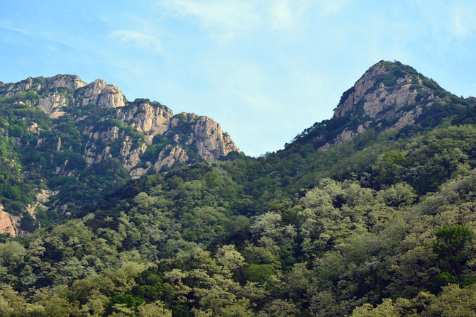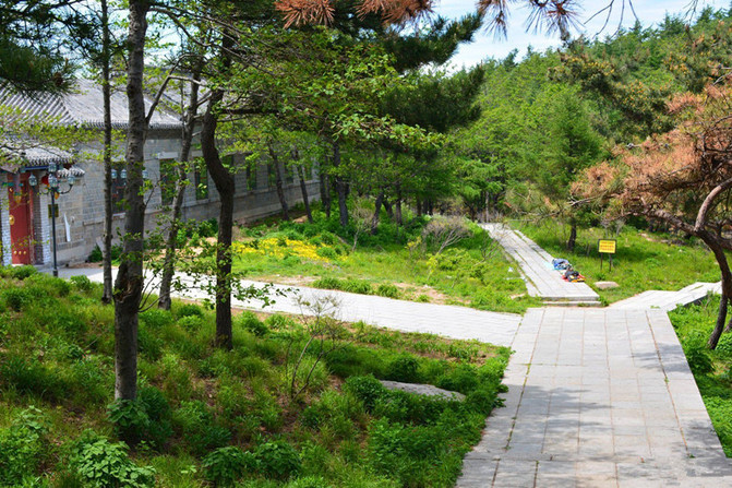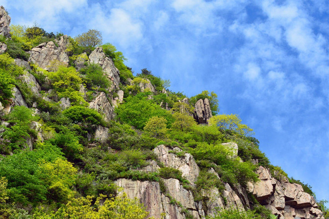也许是缺水的滋润,进山以来,看到的松树缺点儿生机,感觉干巴巴的,倒是越往上走,植被反倒越显翠绿,越具生气,从此处起,视野也变得开阔起来,植被也丰富起来,真可谓“渐入佳境”也