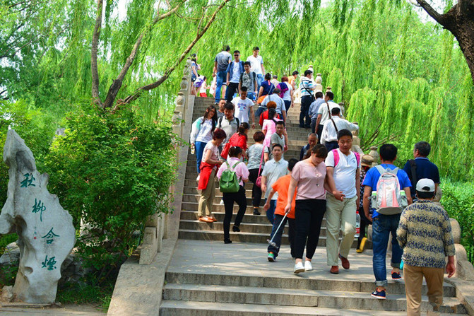 大明湖北门。 出大明湖北门,向北前行一条街,即达济南火车东站,在此乘火车返回。泰山之行、趵突泉之行唯一缺憾就是缺了点水。但泉城的美景、特别是大明湖的碧波与柳烟也算是洗涤和抚慰了那丝丝遗憾!不过回过头来一想,留点遗憾何尝不是幸事呢,遗憾往往倒让我们不时忆及当初,也算是增强记忆的意外之喜!