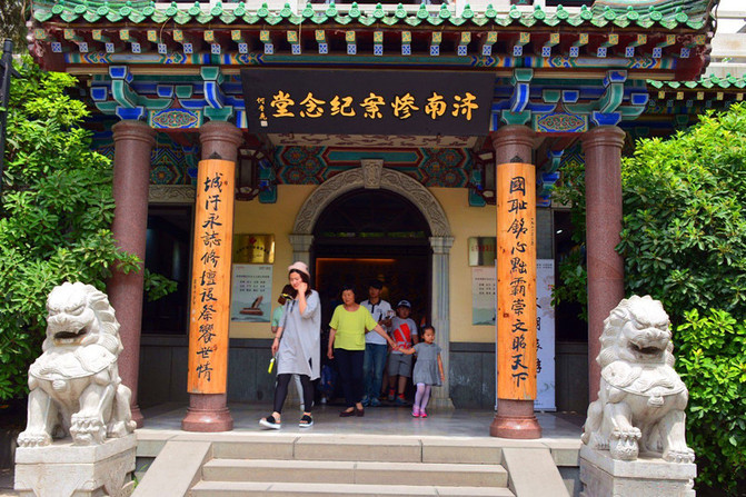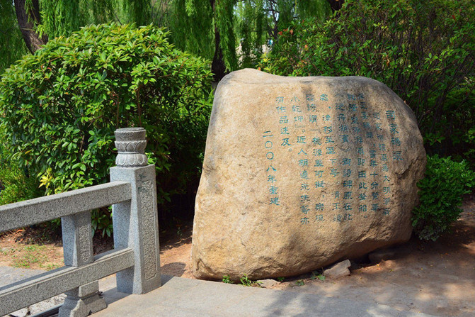 秦琼祠。秦琼字叔宝,山东历城县大槐树庄人,约生于隋开皇五年(公元585年),卒于唐贞观12年(公元638年)。唐时,累立战功,官到左武卫大将军,封为胡国公,死后陪葬昭陵。相传,秦琼显赫后,在五龙潭侧建府第,后人就地建祠,并存有“唐左武卫大将军胡国公秦叔宝故宅”石碑。把五龙潭说成是秦琼故宅始见于元朝,桂馥《潭西精舍记》沿用了这一说法。碑载:“历城西门外唐翼国公故宅……一夕化为渊……一旦为神物夺去”古历亭旧址,位于五龙潭西,武中奇书法篆刻作品西展馆南。