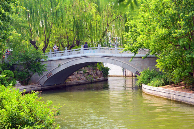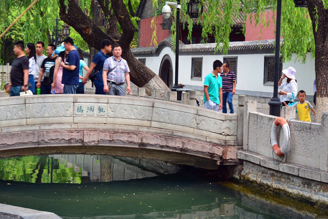 “观澜桥”在趵突泉西侧,位于娥英祠、通泺园之间。桥宽3米,长5米,呈弓型,系按民族风格建造,东西构架。因在桥上能观赏趵突泉水,故称观澜桥。这位大哥的表情代表了来此游客的表情代表----失望、无奈,好在公园景色可人,弥补了不少。