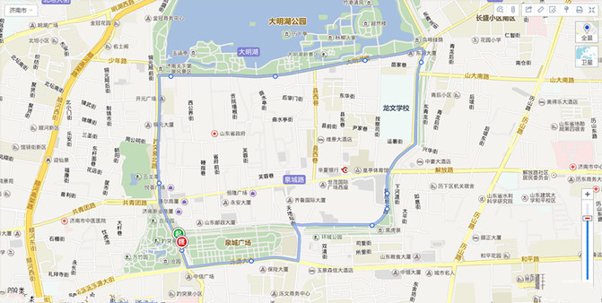 济南游777路公交。趵突泉东门为起终点,途径泉城广场、黑虎泉、大明湖东南门、大明湖南门、大明湖西南门、五龙潭等,是名副其实的环游路线。