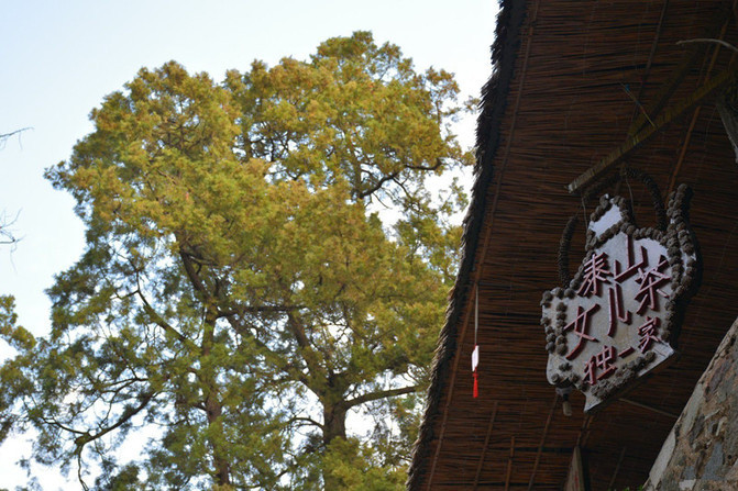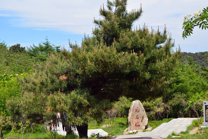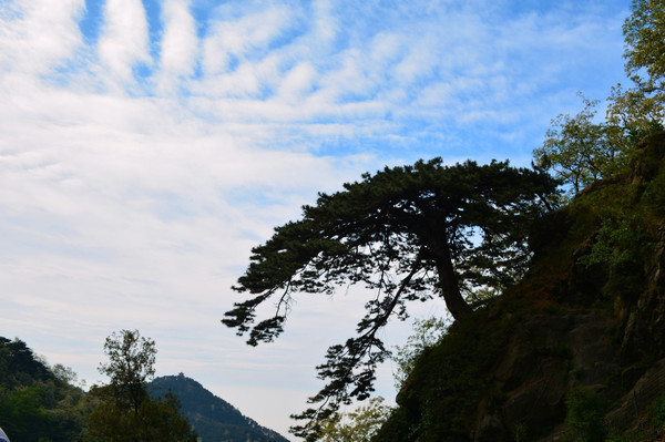 望人松。五大夫松西侧山腰,一松潇潇洒洒,傲然挺立。树冠下一长枝披拂,仿佛翘望八方游人,故名“望人松”,活生生就是泰山“迎客松”。