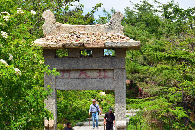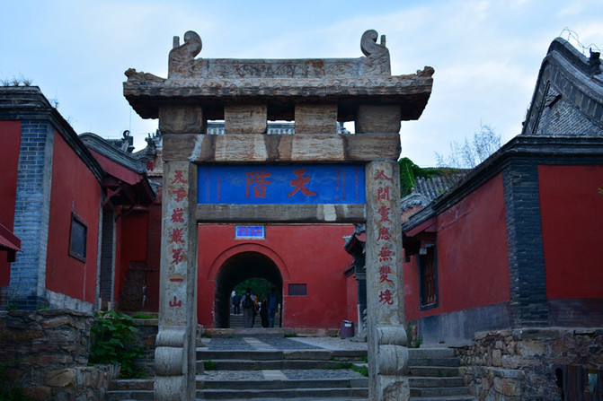 天阶坊。明嘉靖年间建,巡按山东监察御史高应芳题联:“人间灵应无双境,天下巍岩第一山。”