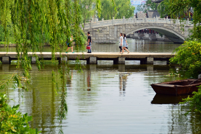 计划游园的线路,拍了以上照片,怎么也找不到湖东南的进口处,只得问门口的工作人员,神答复:出了西南门直接进园,谁都可以去,东南端是免费开放的.......水是桥的载体,桥是水的灵魂。有水无桥失灵气,有桥无水少生机!
