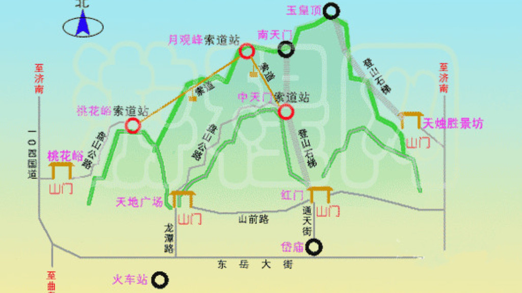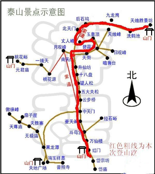 A.第一条:最经典的红门路徒步中线,其实是中线登封御道。是指从岱庙(东岳庙)-一天门-孔子登临 处-红门-中天门-南天门-玉皇顶