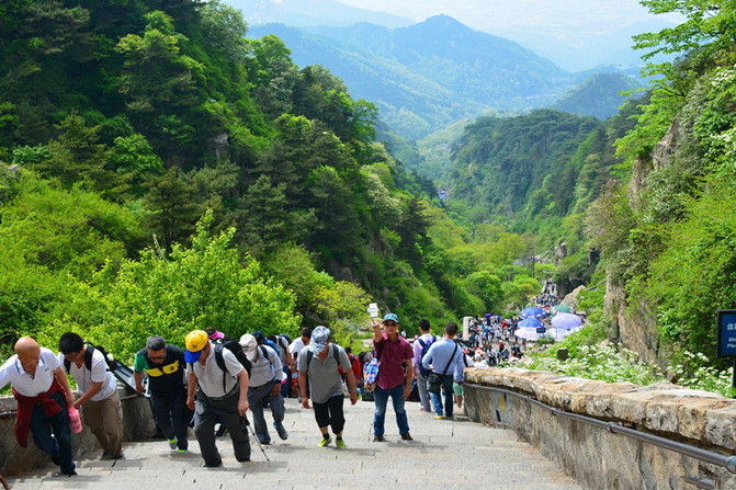 登山起点红门景区有寄存包裹处,如原路返回,又是徒步,可以选择轻装上阵
