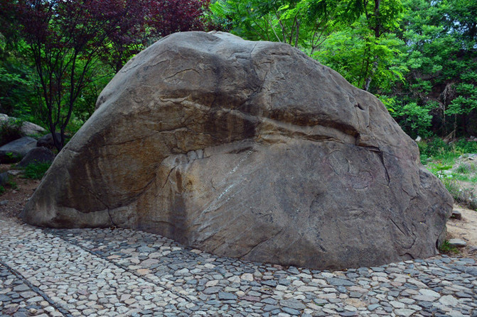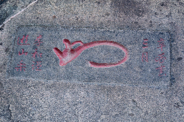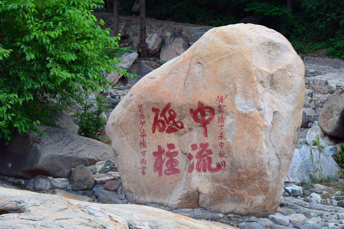 这块石头有来头,很特别。从我进山起到后山下山,看到的都是灰色的石头,唯独这一块儿与众不同,还以为是现代人给弄来的,但一看题字都明朝的事了,留给地质学家考证吧