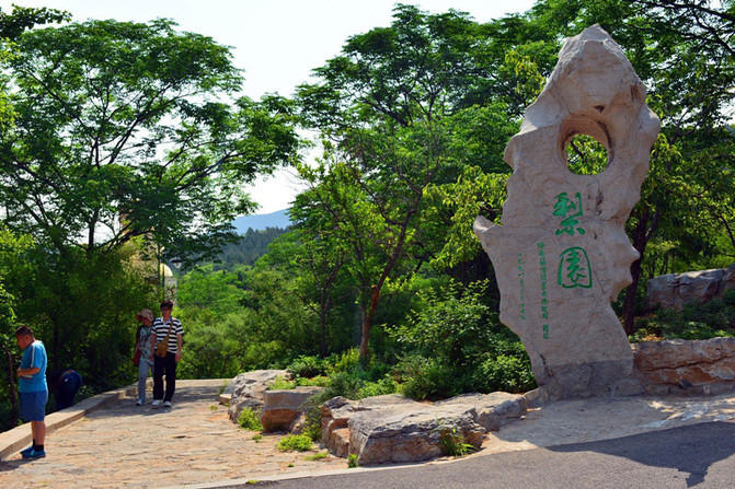 在万佛洞与弥勒胜苑之间,近临上山盘路,4000余平方米的梨园即建于此。这里原是一片荒地,岩石裸露,野草凄凄,1998年3月,由济南冠世时装有限公司捐资10万余元爆破凿穴栽植而成,计有200余株。现已茁壮成林。