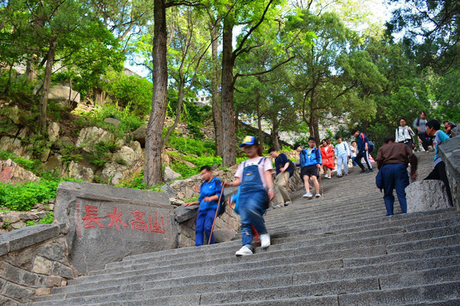 和登恒山的感悟差不多,都是前山人文景观厚重、后山自然景观幽美。只不过泰山要比恒山更厚重丰富幽美。徒步登五岳是我登山最爱,当然包括上山和下山。初登华山经验不足,准备不充,下山到北峰不得已乘索道。恒山那是真正的全程徒步,膝盖有点受不了那也坚持下来了。泰山当然如此,只不过比下恒山更显艰难,因为台阶太陡,对膝盖冲击力更大,好在有伴儿也是通病,还好走走歇歇无妨大碍。