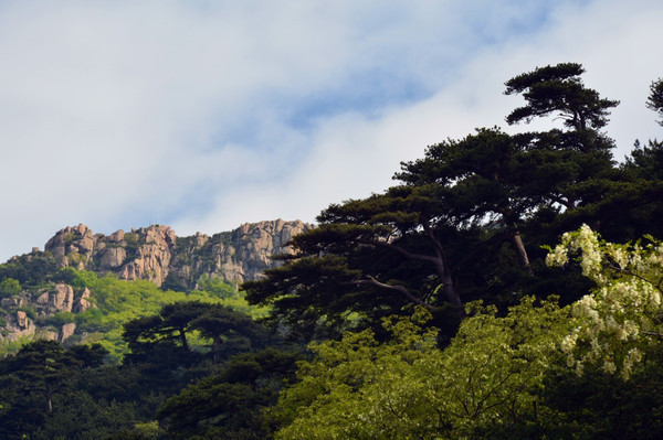 在此得说说槐树了,泰山故为壮观,可惜少有雨水滋润,一路走来古人留下的“飞瀑”、“涧鸣”未见一处,倒是越往山间走,越感觉神清气爽,香味扑鼻,原来是漫山的槐树绚烂绽放,引来无数蜂蝶,当然也留给游客醉美的味觉回味!