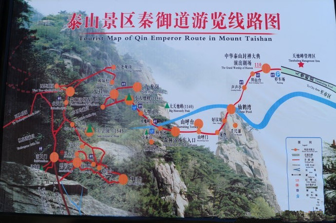 泰山有四大奇观,六大景区。四大奇观:旭日东升、晚霞夕照、黄河金带、隆冬雾淞。六大风景区:泰山幽区、旷区、妙区、奥区、丽区、秀区(幽区指中路旅游区,是最富盛名的登山线路,自登山盘路的起始点一天门经中天门至南天门,全长5.5公里,几乎全部为盘路,共有6290级台阶,沿途风景深幽,峰回路转,古木怪石鳞次栉比;旷区指西溪景区,是登山的西路,自大众桥起有一条盘山公路,可以直达中天门。除此之外,还有一条登山的盘路,两旁峰峦竟秀、谷深峪长、瀑高潭深、溪流潺潺;妙区即岱顶游览区,自泰山幽区一路拾级而上。过了十八盘,登上南天门,就进入了泰山妙区;奥区是以后石坞为中心的景区,其特点是峰雄岩壮、怪石嶙峋、古松竞奇、鸟语花香,雄壮奇奥、美不胜收;丽区去即泰山山麓及泰城游览区,无须登山;秀区主要指桃花峪景区,在泰山的西麓。桃花峪深幽静丽,景色奇秀,且有一条索道直通主峰。樱桃圆则离城不远,鸟语啾啾、溪水潺潺)。此次徒步选择了南上北下,依次经过幽区、妙区和奥区(各路段怎么走后面攻略略有介绍)。对泰山算是有了个大概了解,也深切体会到何为“稳如泰山”成竹在胸的安然、何为“会当凌绝顶、一览众山小”的豪迈。走吧,随着古人上天街去。