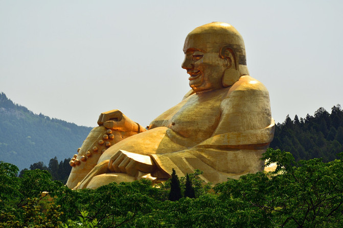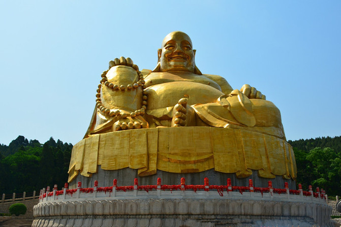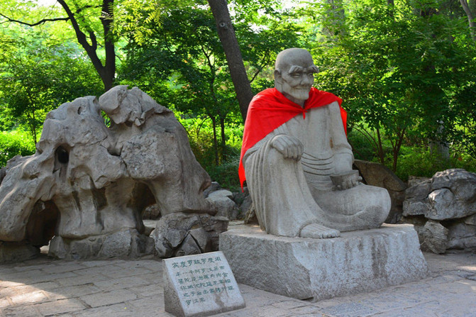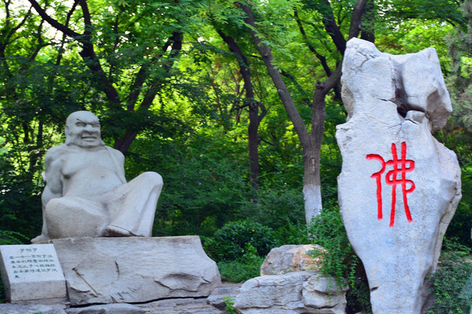 千佛山。千佛山风景区位于山东省省会济南市南部偏东处属于国家4级旅游景点。隋开皇年间,依山势凿窟,镌佛像多尊,始称千佛山,并建"千佛寺"。唐贞观年间,重新修葺,将"千佛寺"改称"兴国禅寺"。千佛山遂成为香火胜地。千佛山,东西横列如屏,风景秀丽,为中国佛教名山之一。山北侧有登山盘路三条,蜿蜒回环,松柏夹道,浓荫蔽日。(门票30元,上山索道20元)看惯了慈祥、丰腴,庄重的佛像了,可是进入千佛山大门,道路两侧分立各具姿态的佛祖,原来佛也是像人一样有七情六欲的吧哈哈,下面几尊有点逗哈